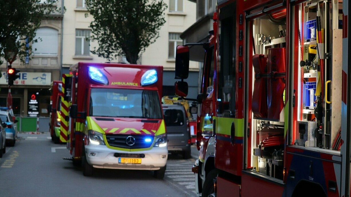 Géint 17.30 Auer war um Boulevard Prince Charles an der Stad en Auto an eng Mauer gerannt, zwou Persoune goufe verwonnt. Ee Samu an zwou Ambulanze waren op der Plaz.