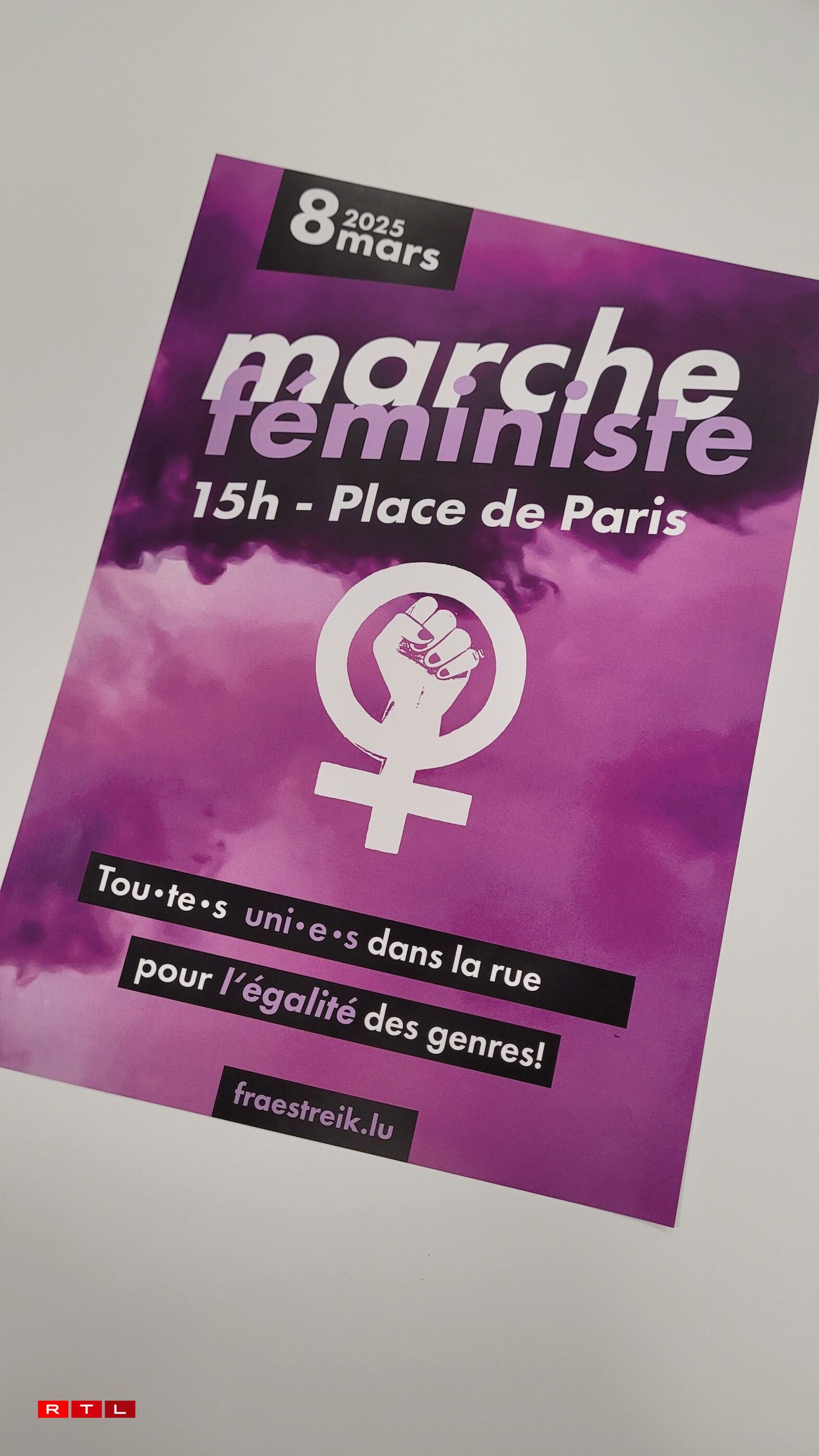 Treffpunkt fir d‘Marche féministe ass den 8. Mäerz um 15 Auer op der Paräisser Plaz. Vun do aus geet et op de Knuedler, wou ënnert anerem Rieden zu de verschiddene Revendicatioune gehale ginn.