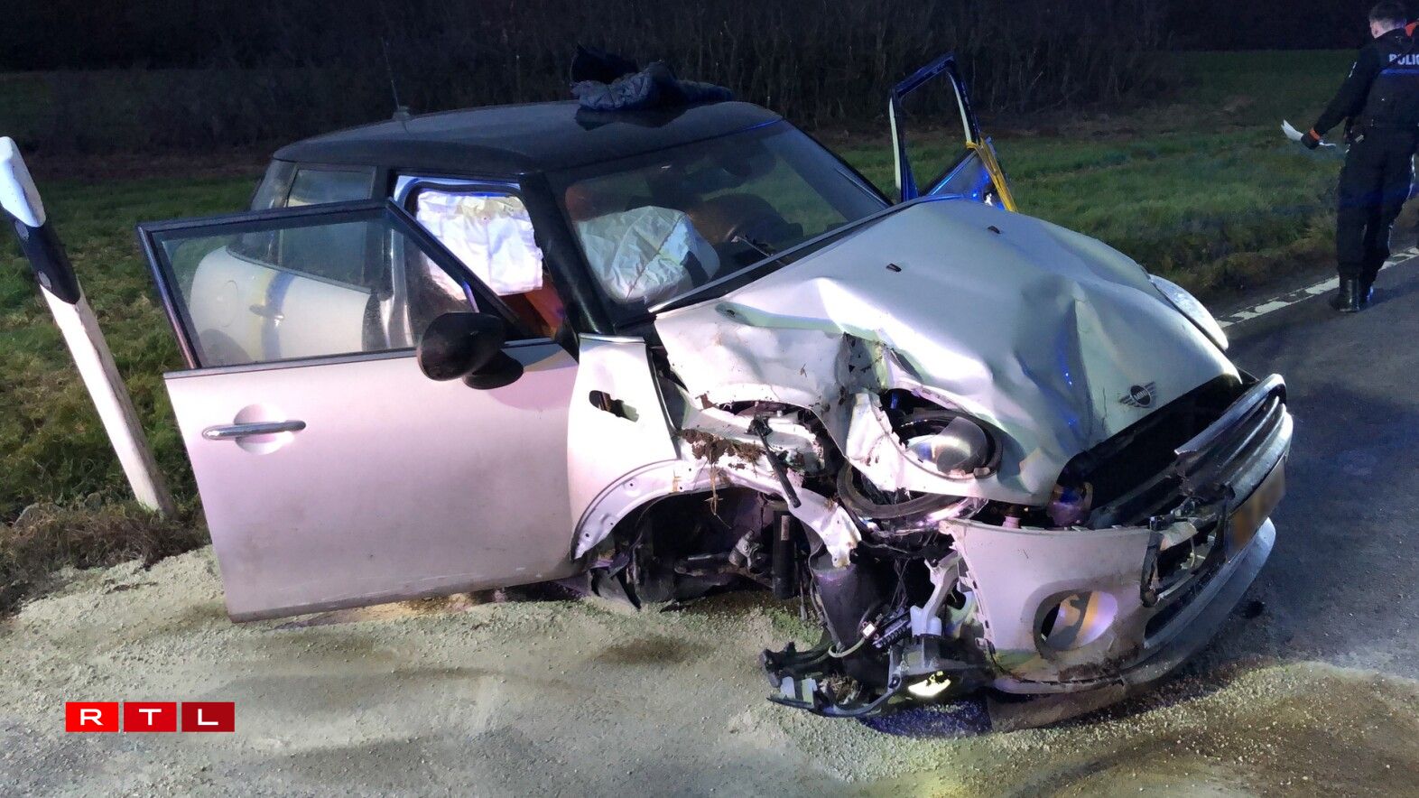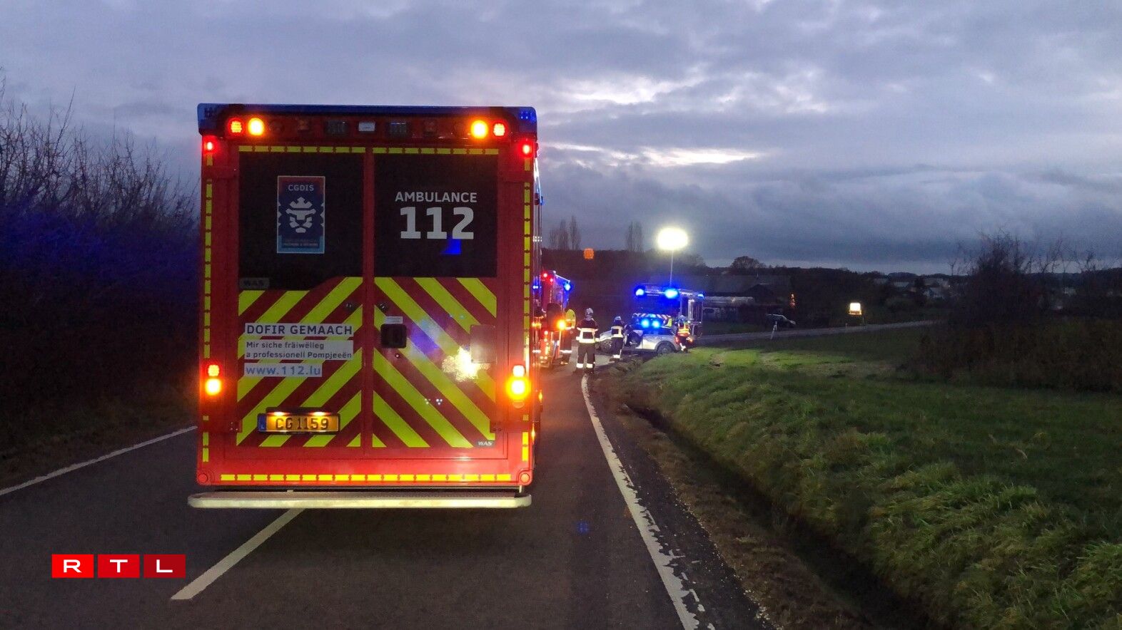 Éischten Informatiounen no hat eng jonk Fra d’Kontroll iwwert hiert Gefier verluer, krut de Gruef ze paken an huet sech doropshin mam Won iwwerschloen. Den Auto ass um Daach gelant.