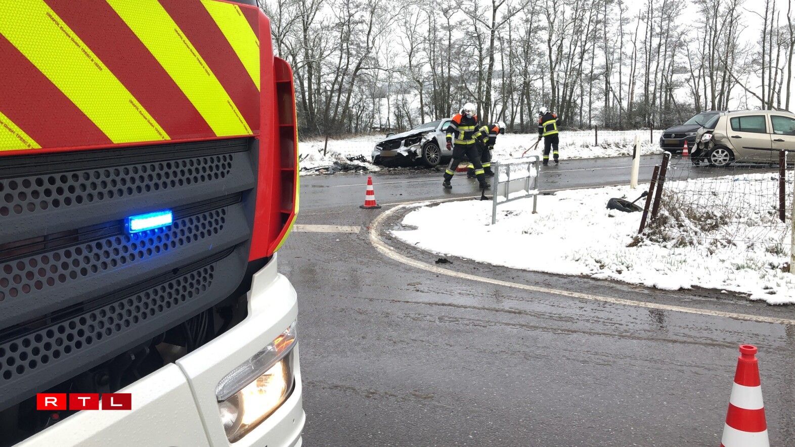 Zwee Autoe sinn hei frontal aneneegerannt, en drëtte Won gouf liicht touchéiert. Véier Persoune goufe blesséiert, wéi de CGDIS matdeelt. Opgrond vun den Opraumaarbechte koum et zu Perturbatiounen am Trafic.