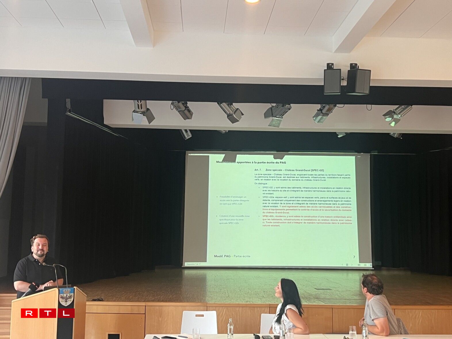 „Et ass esou, dass de Schlasspark am PAG eebe spezifesch behandelt gëtt, et gëtt deen Deel vum bestoende Schlass, wou eeben aner Saache méiglech si wéi de Park u sech, dee jo a senger haiteger Funktioun am Fong do klasséiert ass an innerhalb vun där Zone gouf elo eeben ee spezifesche Beräich ausgewisen an deem ebe kann déi zousätzlech Residenz gebaut ginn an dat ass eeben ee Prozess, dee gelaf ass, wou gekuckt gouf, wou ass dat sënnvoll, wou kann sech dat gutt an dee Patrimoine integréieren a voilà, wéi funktionéiert dat konkret um Terrain fir do ze bauen.”
