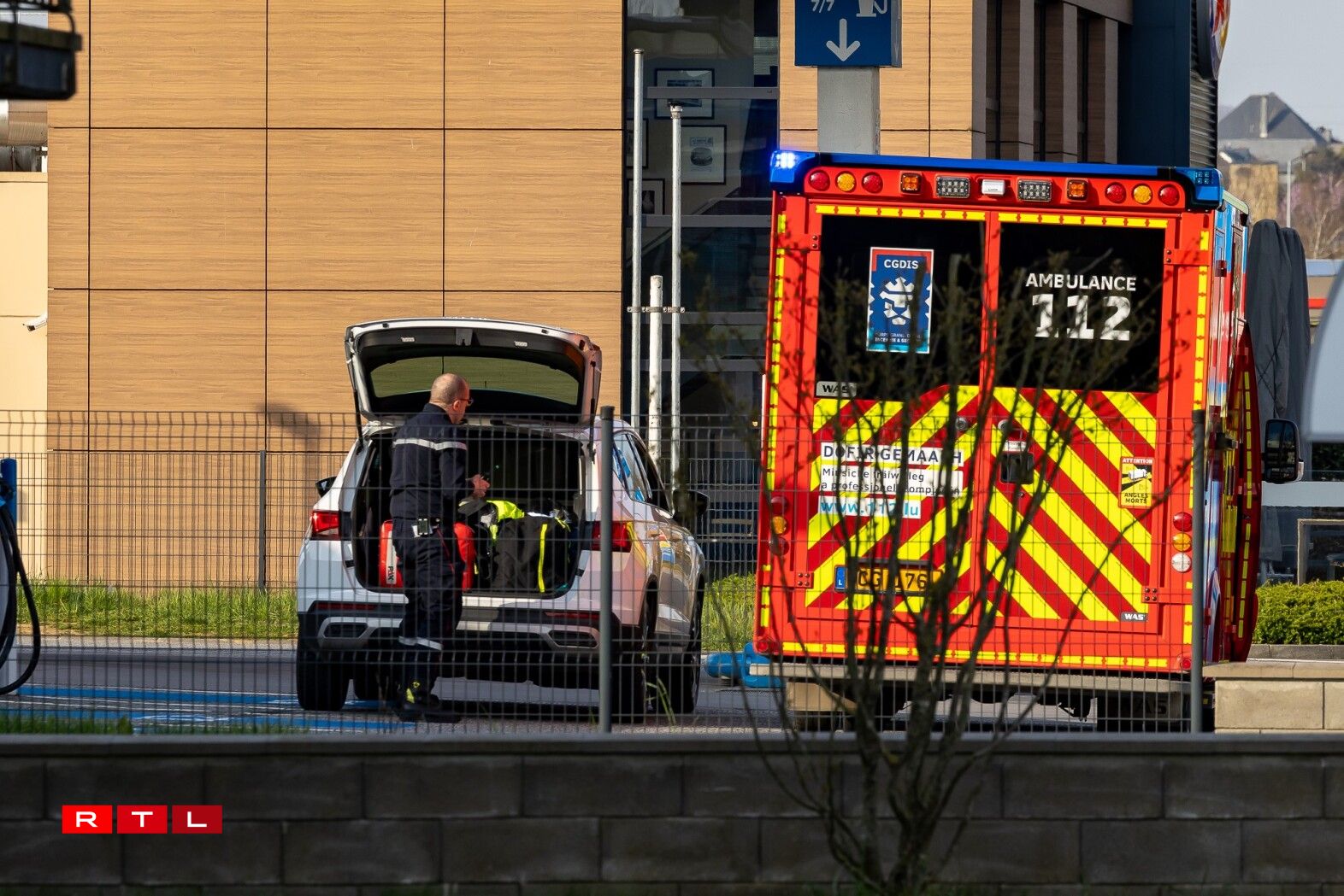 Kuerz virun 8 Auer gouf eng Geiselnam an engem Supermarché an der Avenue de Luxembourg zu Käerjeng gemellt. Direkt e puer Patrulle vun der Police sinn op d’Plaz gefuer, grad ewéi och d’Spezialunitéit. Et gouf e Sécherheetsperimeter ronderëm de Supermarché ageriicht.