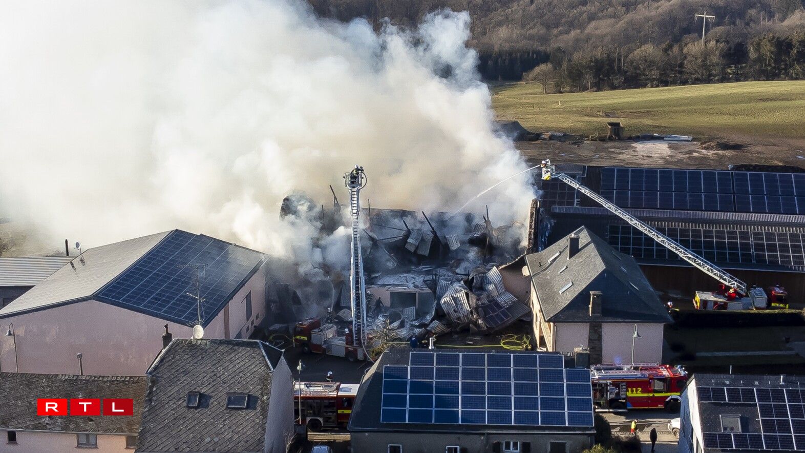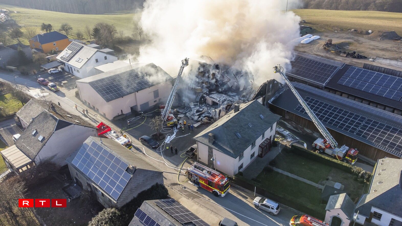 Wéi et op Nofro bei der Police heescht, hätt en Trakter, deen amgaange war, Aarbechten um Haff duerchzeféieren, an engem Stall Feier gefaangen. Eng Kou ass duerch de Brand gestuerwen, eng zweet huet missten ageschléifert ginn. Well am Stall och Botte gelagert waren, huet d’Feier séier eng gewësse Gréisst erreecht. Persoune koumen net zu Schued.