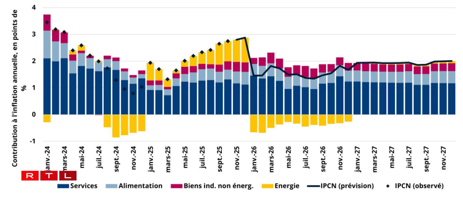 De Statec gesäit fir dëst Joer um Enn en Inflatiounstaux vun 2,2% viraus. D’nächst Joer géing den Taux e gutt Stéck erofgoen an zwar op just nach 1,5%.