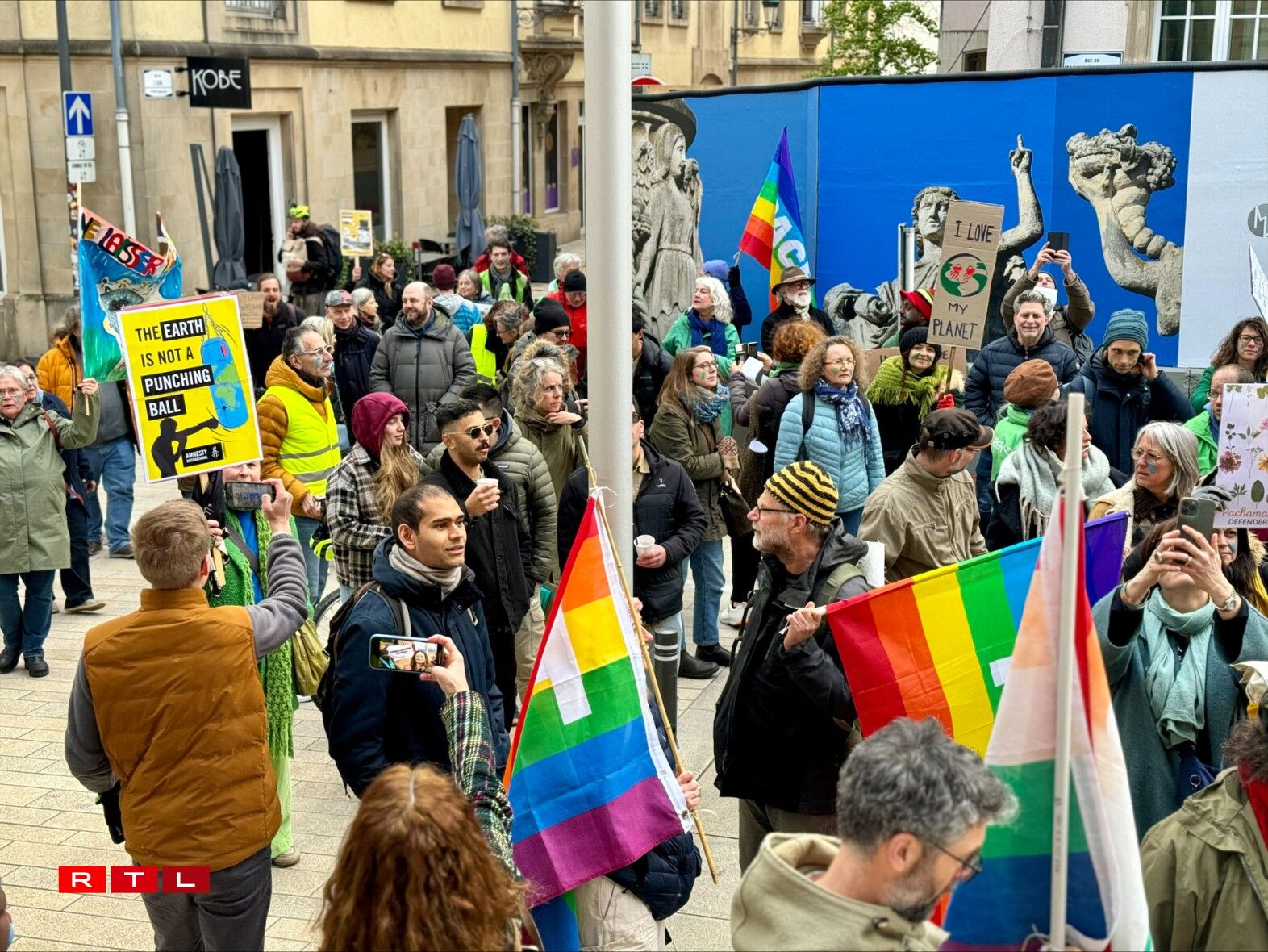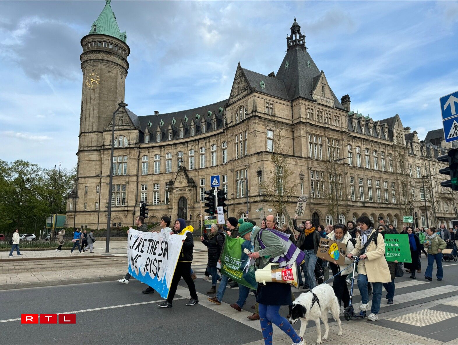 Um 17.30 Auer ass et bei der Gare an der Haaptstad lassgaangen. Schonn am viraus hat een zesummen eng ganz Partie Plakater preparéiert, ënner anerem an der Gare selwer. Mat vill Gesang, an ënnerschiddleche Slogane, wéi «On est plus chaud que le climat » oder « Debout pour le climat », ass de Manifestatiounszuch vun iwwer 300 Mënsche vun all Alter bis virun d’Chamber gezunn.