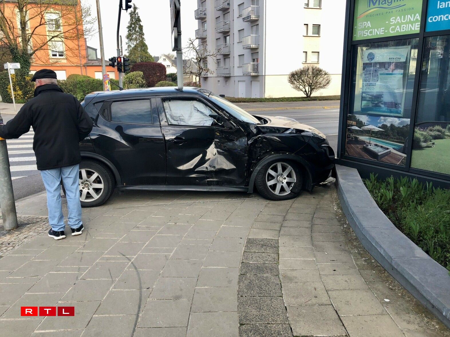 Nodeems béid Gefierer kollidéiert waren, ass den Auto op den Trottoir geschleidert ginn. Glécklecherweis ass beim Accident awer kee Foussgänger blesséiert ginn, och béid Chauffere sinn net verwonnt ginn.