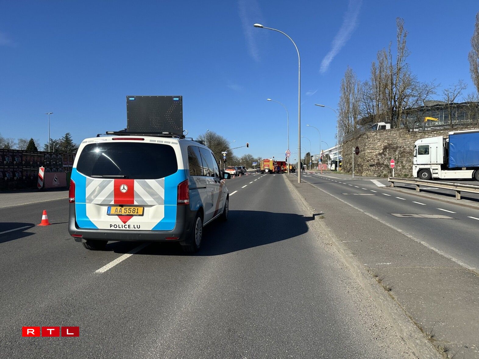 Zu Helsem a der Rue Jean Mercatoris gouf géint 10.33 Auer e Foussgänger vun engem Auto ugestouss a blesséiert. Hei waren d’Rettungsekippe vu Lëntgen a Steesel op der Plaz.