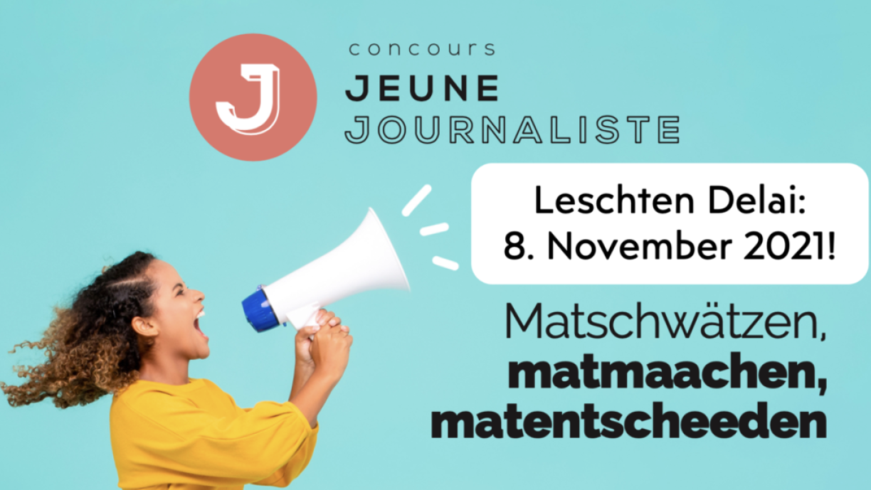 Concours jeune journalisteLeschten Delai fir d'Umellung ass den 8. November 2021