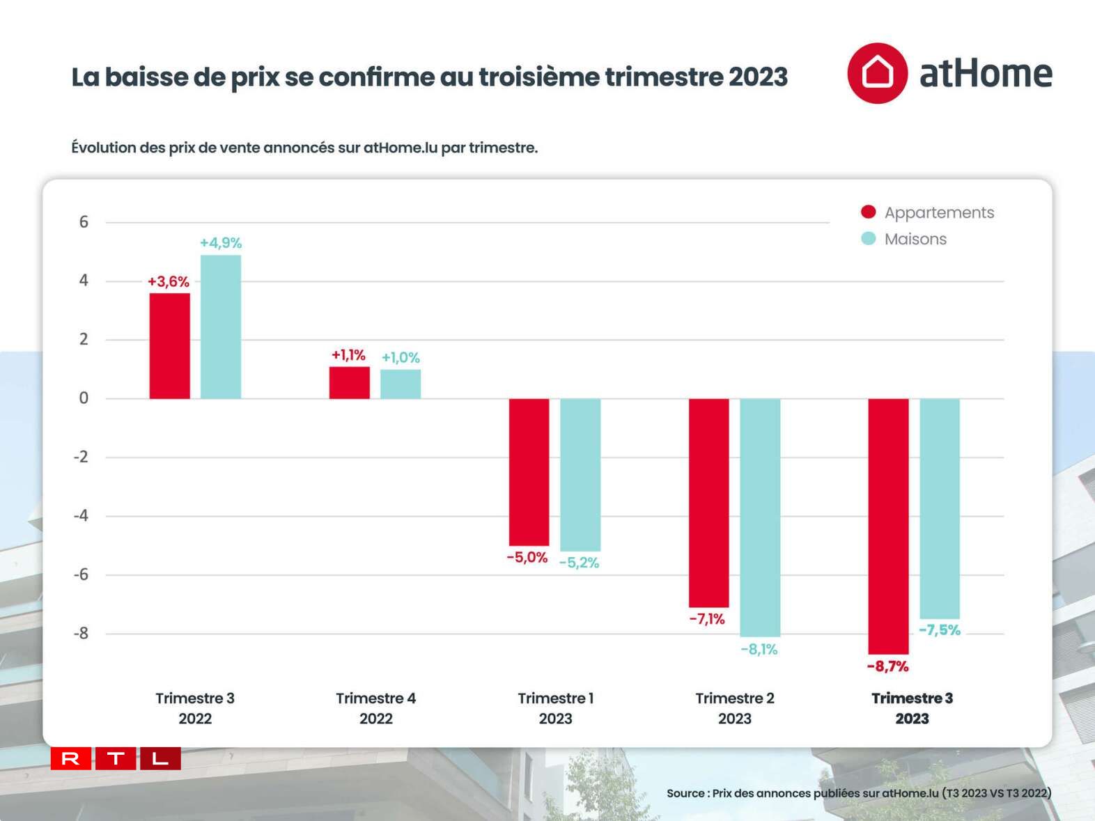D’Präisser, fir e Logement ze kafen, si weider um Erofgoen. Et geet dobäi natierlech ëm déi affichéiert Präisser vun der Vente, bei deenen een eng generelle Baisse vu liicht méi wéi 8 Prozent festgestallt huet.