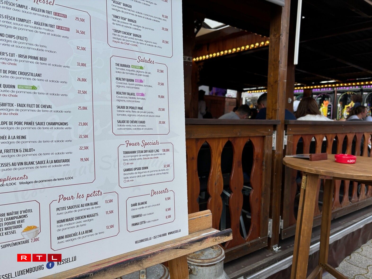 Guer net vum gebakene Fouerfësch ze schwätzen, deen eng 29 Euro a 50 Cents kascht. Oder 22 Euro 50 fir de Fouerkascht, Hamm, Fritten an Zalot.