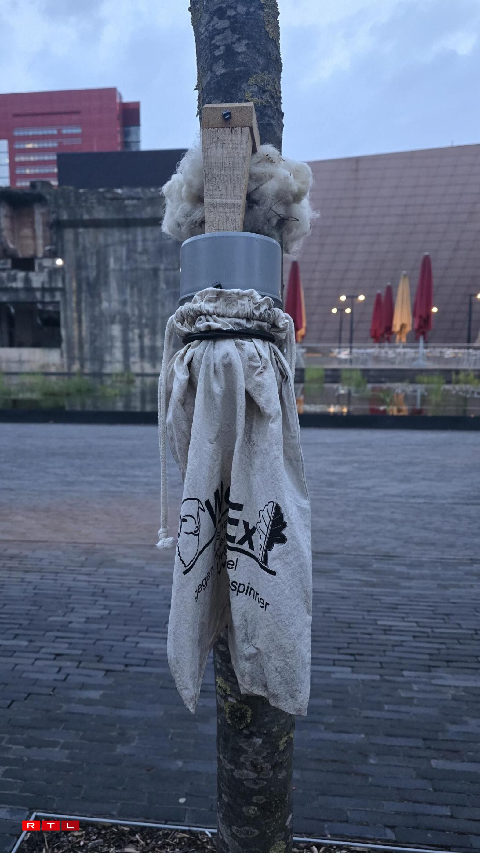 Wien an der Lescht um Belval ënnerwee war, deem dierft opgefall sinn, datt un enger Partie Beem Säck a Woll mat engem Stéck Holz festgemaach sinn. Dobäi handelt et sech net ëm eng neimoudesch Dekoratioun, mee et stécht duerchaus ee Sënn hannendrun. D’Installatioun soll nämlech verhënneren, datt den Eichenprozessionsspinner op der Sich no Iesse vun de Beem op de Buedem kraucht an domadder Mënschen, virop kleng Kanner, an Déiere wéi zum Beispill Hënn a Gefor bréngt. Dat huet de Christian Veletta, Architekt beim Fonds Belval, op Nofro hin erkläert.