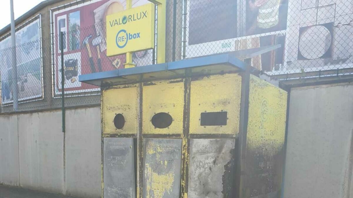 D’Valorlux informéiert datt an der Nuecht vun e Donneschden op e Freiden D’Sammelstatioun Rebox beim Delhaize zu Alzeng verbrannt ass an am Moment net kann benotzt gi.