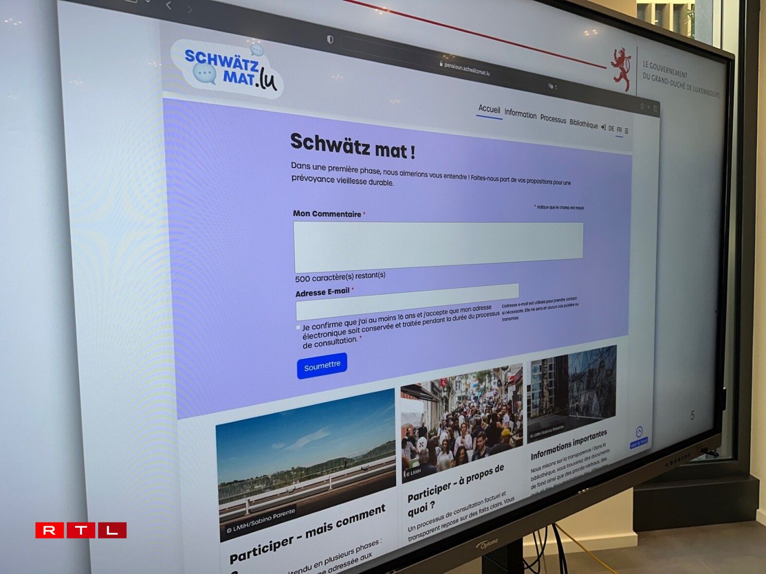 “Debatt” ass awer ze relativéieren - um Site schwätzmat.lu kann een an ee Formulaire mat maximal 500 Zeechen ausfëllen an ofschécken. Do muss ee seng Meenungen, Iddien, Reformvirschléi bal esou kuerz faassen, wéi en “Tweet”.