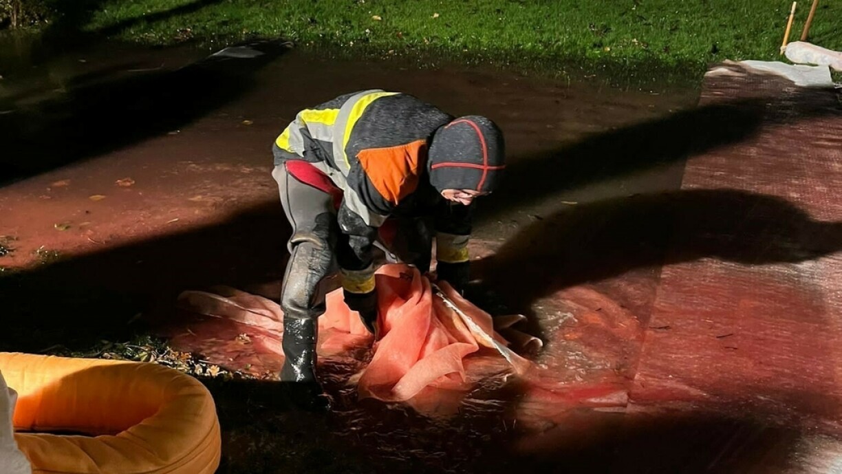 Tëscht 2.000 an 3.000 Liter Ueleg waren ausgelaf, fir d’éischt an e Feld a vun do weider an e private Weier. Fir ze verhënneren, dass sech déi knaschteg Substanz weiderverbreet, gouf eng Zort Damm gebaut, deen um Waasser schwëmmt an et goufe Pompelen installéiert, fir de Knascht ofzepompelen.
