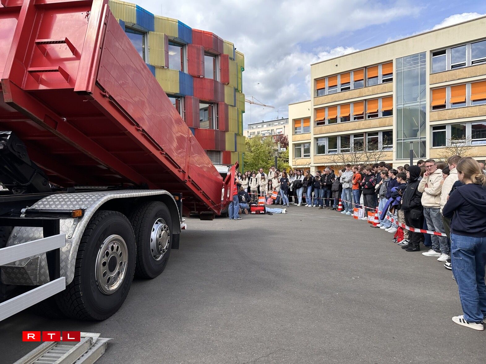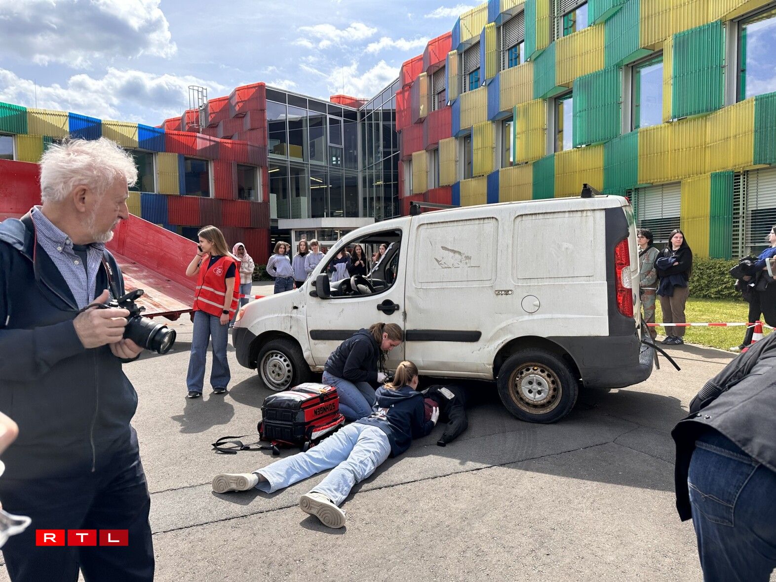 Um Dag vun der Éischter Hëllef huet d’Éischt Hëllef-Team vum Kolléisch iwwregens 25 Joer gefeiert. D’Grupp gëtt encadréiert vun der Pia Heinricy a vum Christophe Ternes. Et wier flott ze gesinn, wéi d’Schüler sech géigesäiteg Hëllefen a Saache bäibréngen, seet de Christophe Ternes: “Do mierkt een einfach, dass eng flott Dynamik entsteet a si maachen dat alles nieft der Schoul nach, dat heescht, komplett op benevoller Basis, wat flott ze gesinn ass, datt eis Jugend sech esou asetzt dofir.”