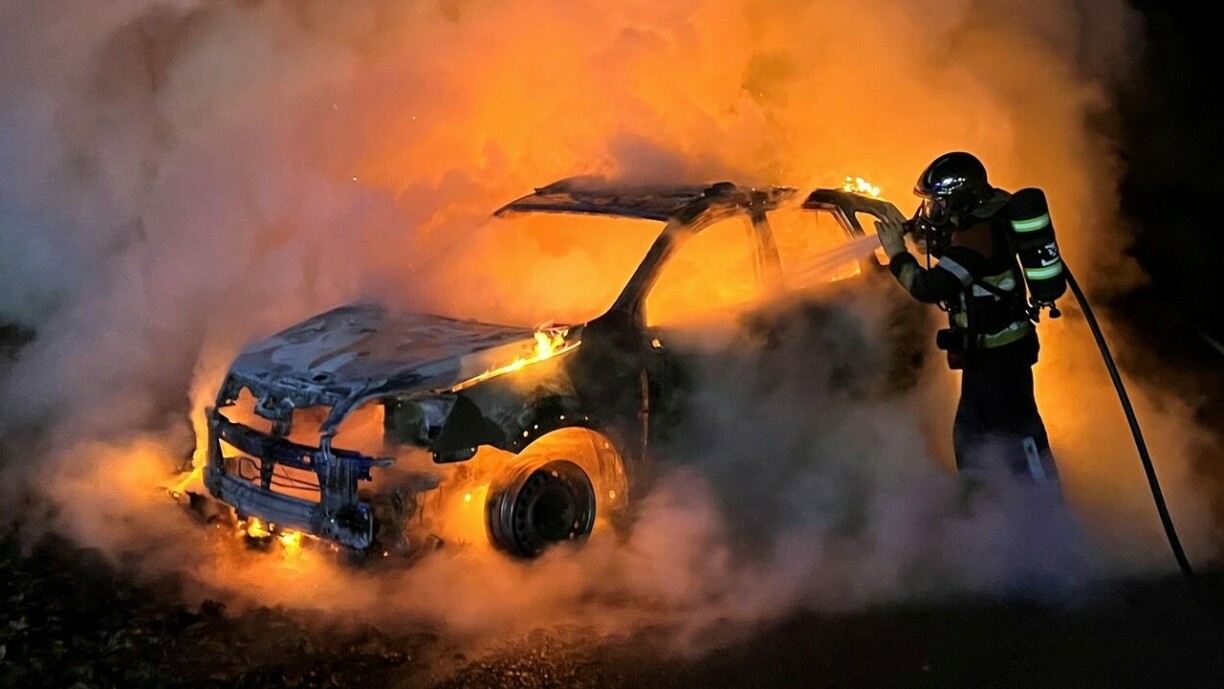 E Méindeg den Owend kuerz virun 22 Auer goufen d'Pompjeeë vun Nidderaanwen an den Asaz geruff, well um Stafelter en Auto gebrannt huet.