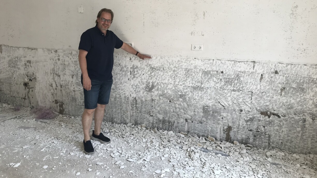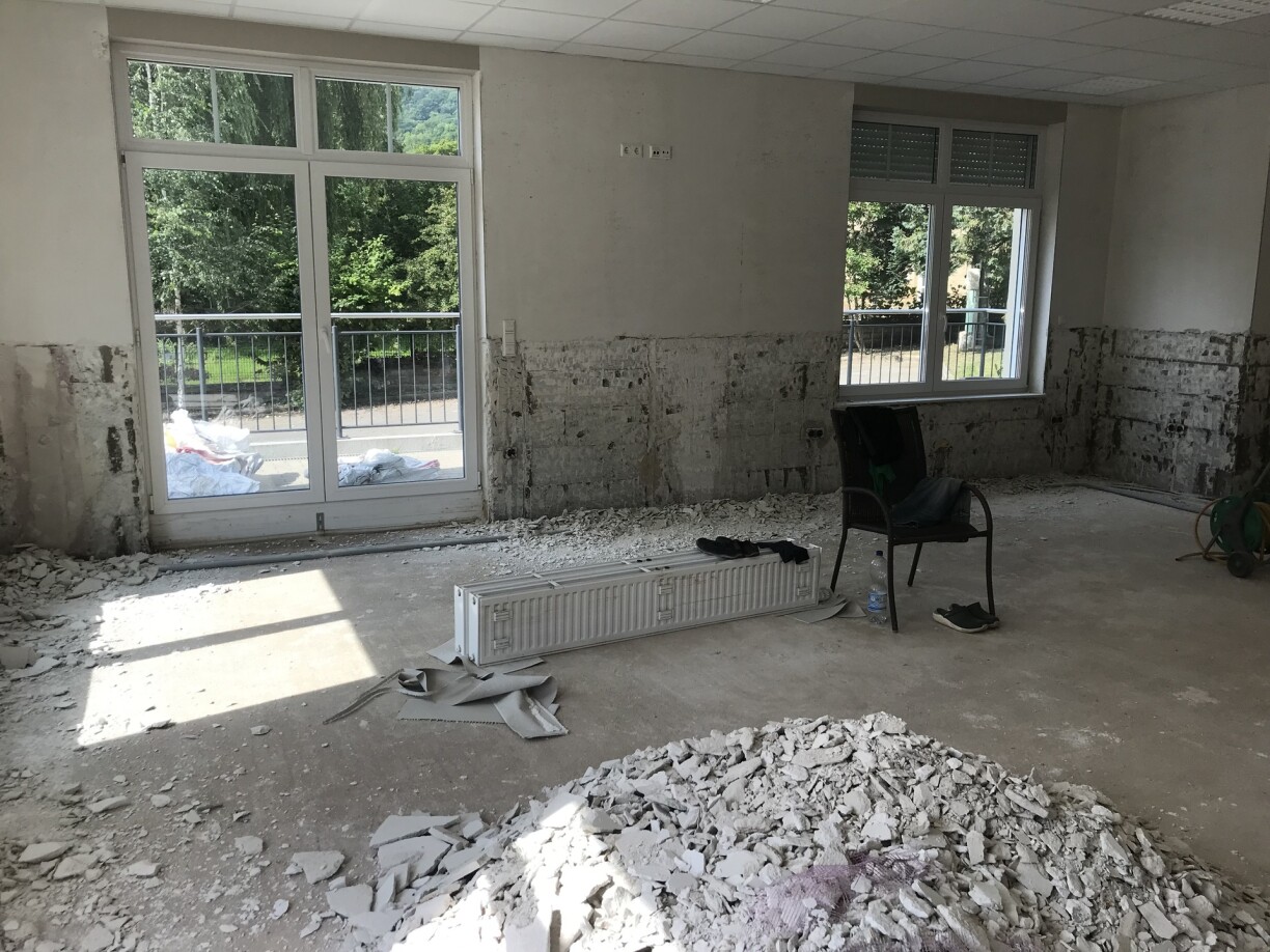 De Buedem huet sech gehuewen, den Estrich an d'Plättercher si futti. 3 bis 4 Méint muss den Atelier zoubleiwen.