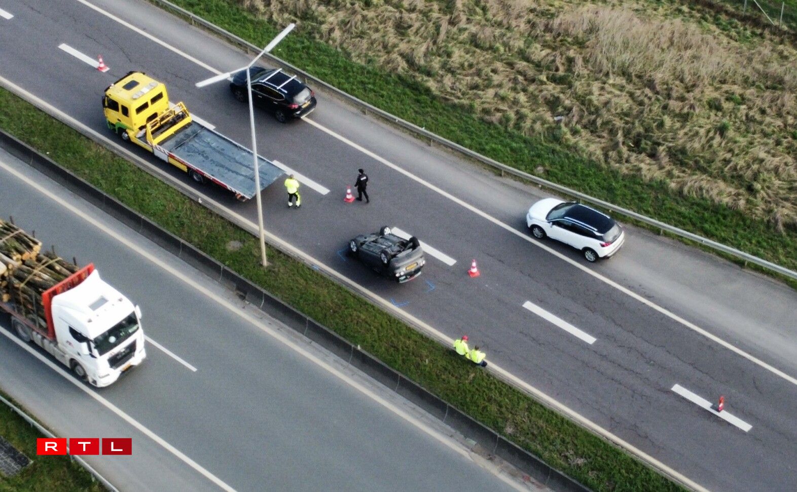 Wéi d’Police schreift, hat sech op der A13 op der Héicht vun der Ausfaart Nidderkäerjeng en Auto iwwerschloen, woubäi eng Persoun blesséiert gouf. D’Automobilistin vum accidentéierte Won koum liicht verletzt fir eng Kontroll an d’Spidol.