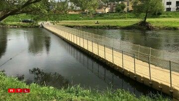 Eng liicht wackeleg AlternativZu Dikrech ass eng Pontonsbréck iwwer d'Sauer opgaangen