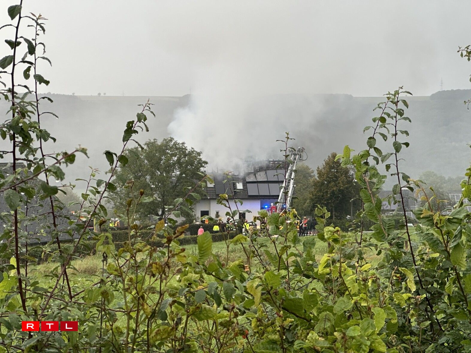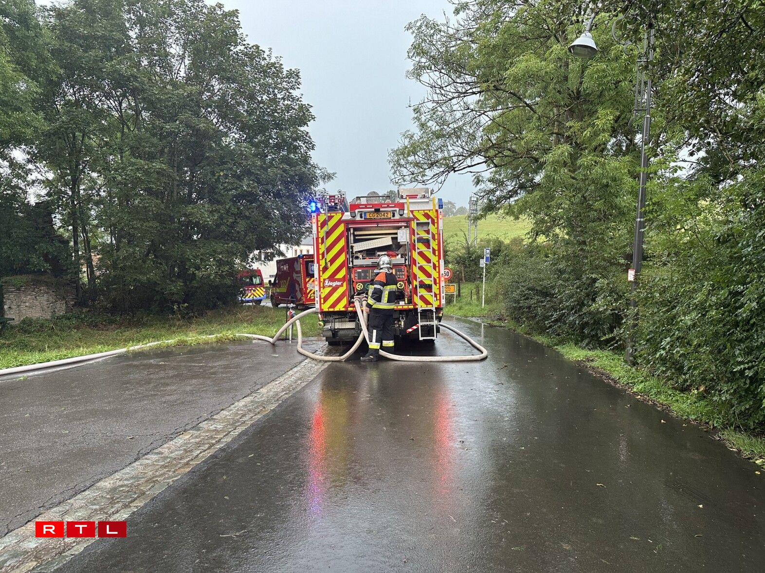 Wéi d’Pompjeeën op der Plaz ukomm sinn, haten d’Flamen den Daach scho staark beschiedegt. An den Asaz geruff goufen d’Pompjeeë vu Clierf, Alebesch an Nordstad, grad ewéi Ambulanze vu Wolz an aus der Nordstad. Dem CGDIS no gouf et keng Blesséierter.