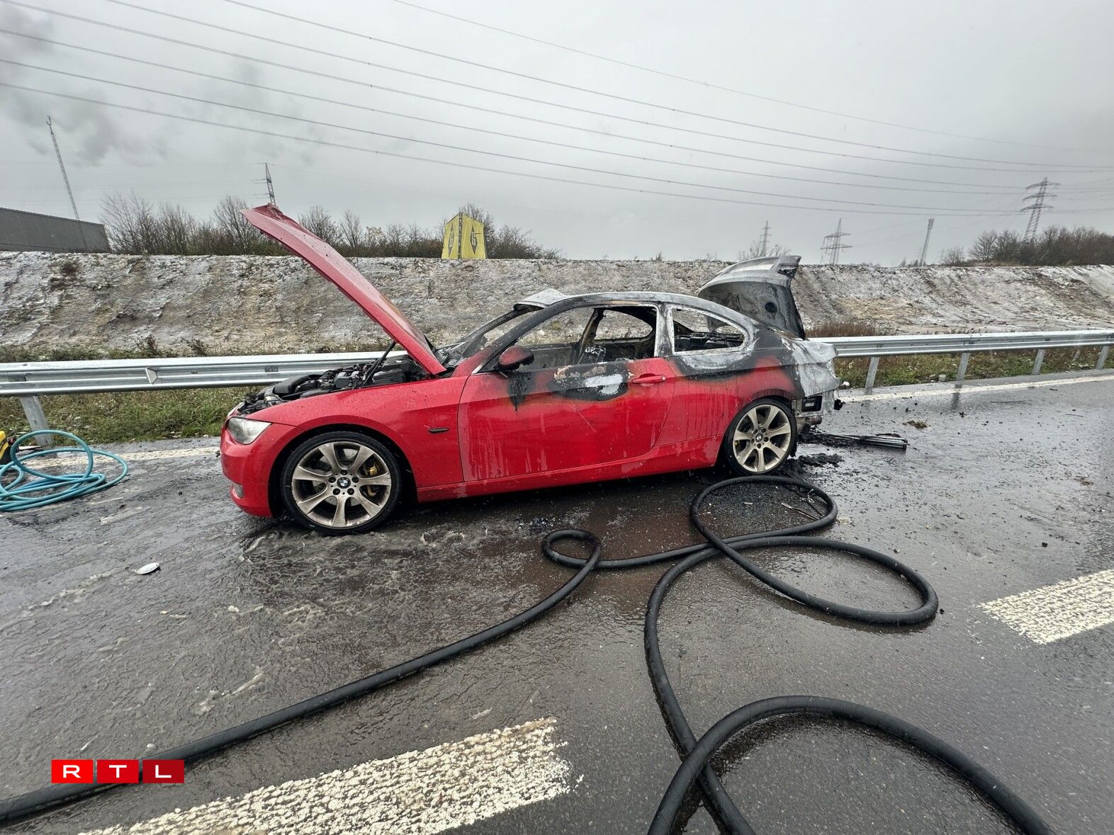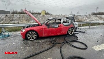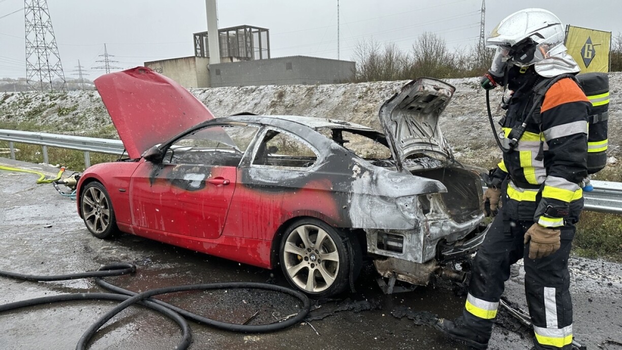 E weideren Asaz fir d’Escher Pompjeeë gouf et da géint 10.15 Auer, wéi tëscht dem Rond-point Raemerich an der Jonctioun Lankelz op der A4 en Auto gebrannt huet. Hei ass et beim Materialschued bliwwen.