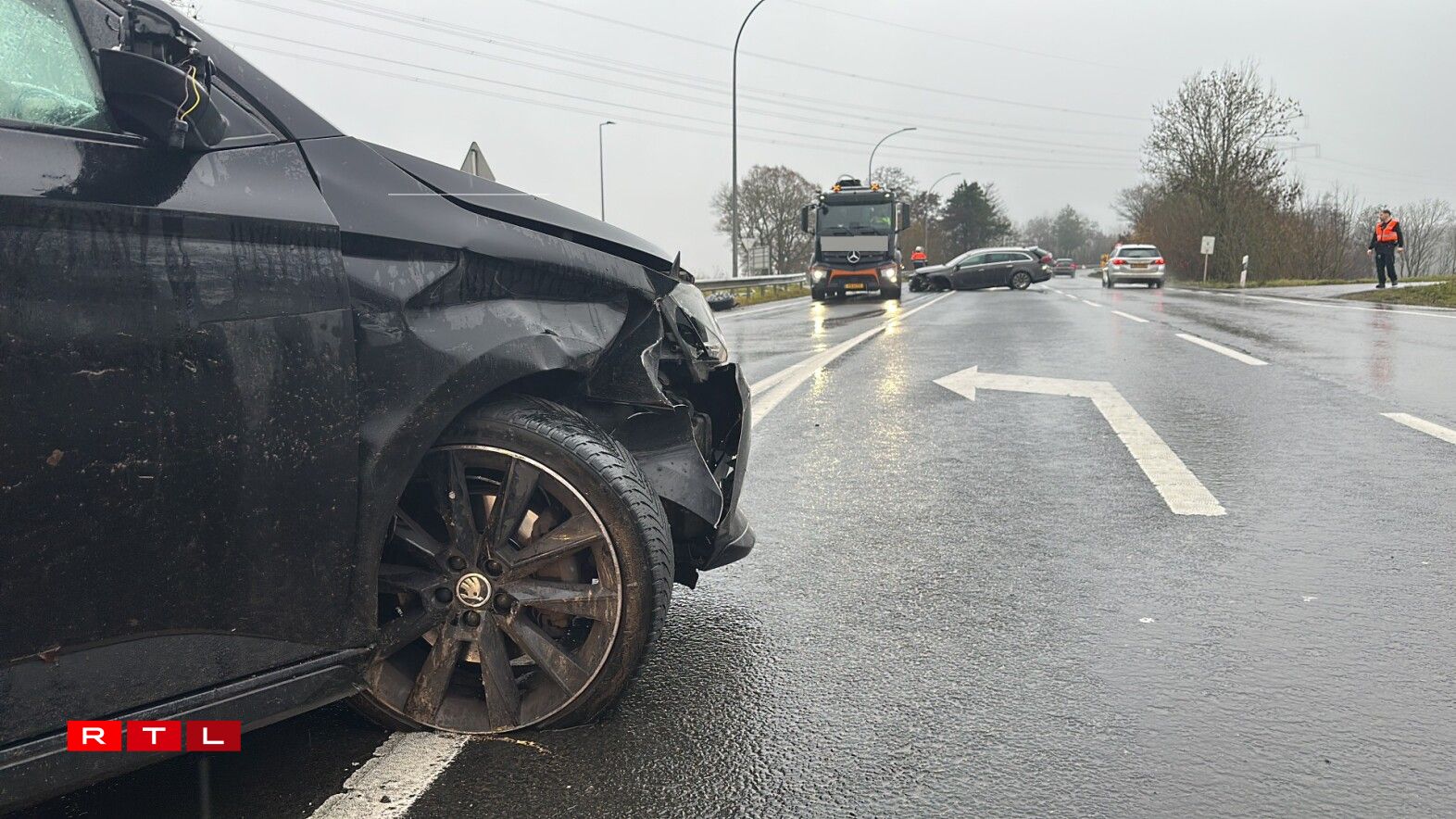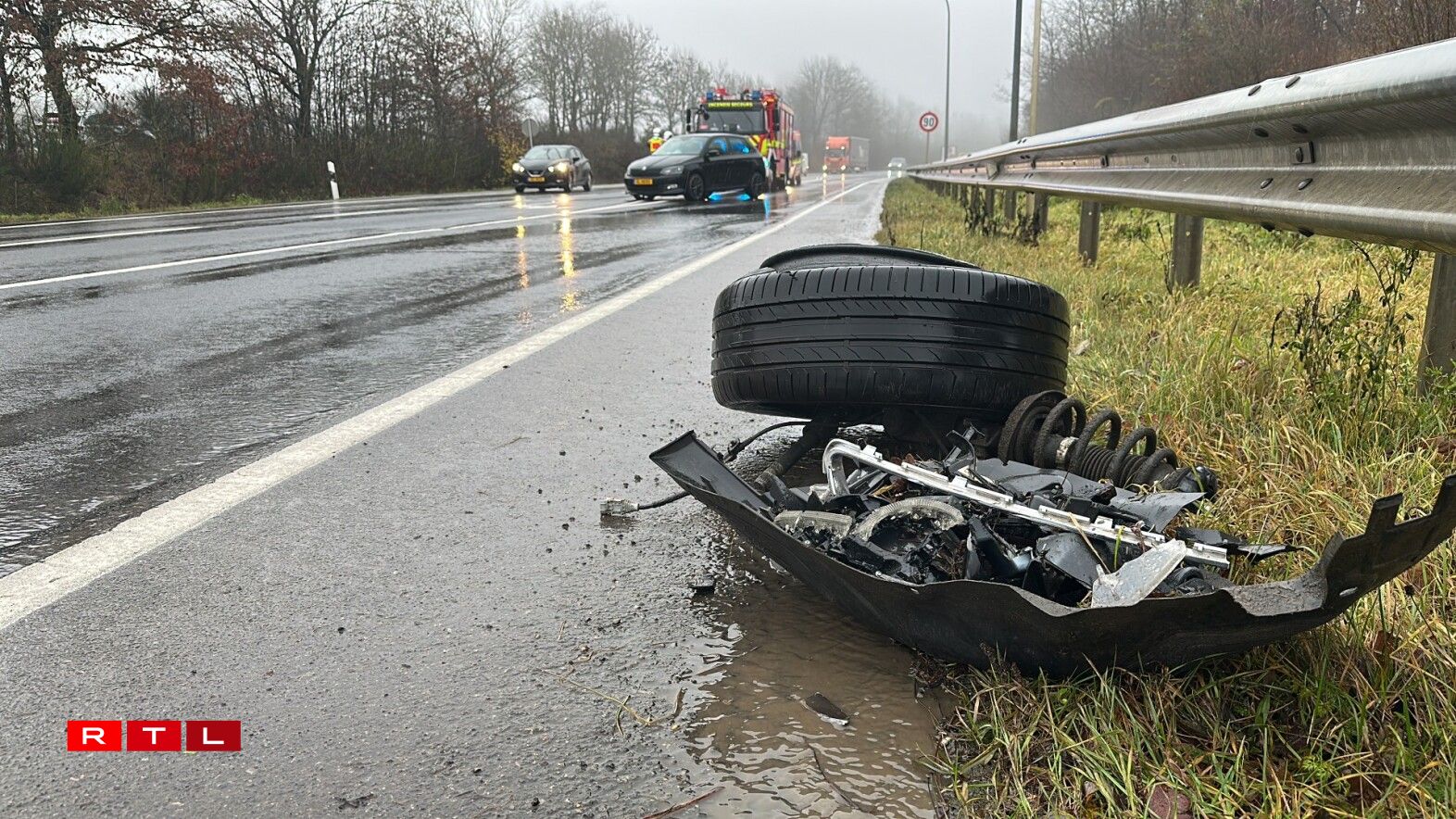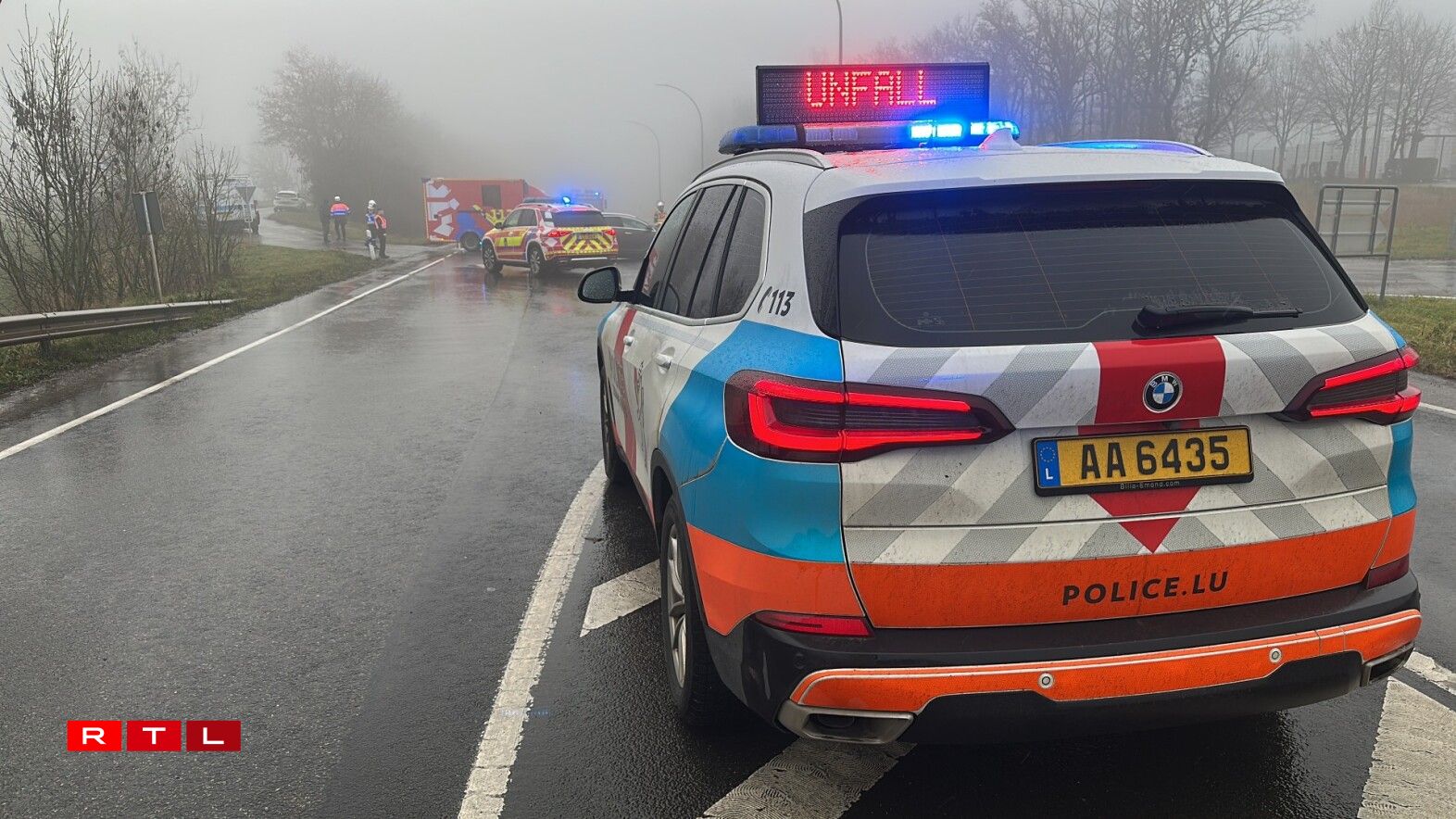 Zwee Autoe waren deemno op der N7 op der Héicht vun der Fléiber aneneegerannt. Wéi et vun der Plaz heescht, goufen zwou Persoune bei der Kollisioun blesséiert a koumen an d’Spidol. Nieft den Ambulancieren an der Police war och de Samu am Asaz.