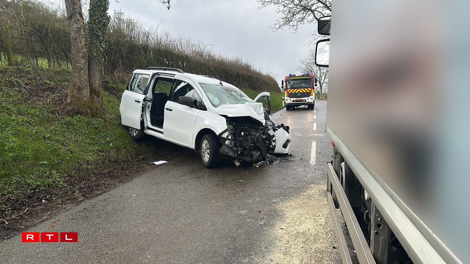 Kuerz no 9 Auer war iwwerdeem op der RN12 tëscht Déierbech a Wolz en Auto an e Fiels gerannt. Déi blesséiert Persoun gouf vun de Rettungsekippe vu Wolz versuergt.