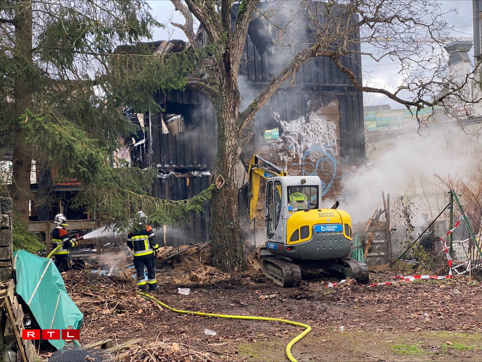 Mat engem Bagger gouf d‘Fassad aus Leem vun de verbrannte Container erofgekraazt. E lokalen Entrepreneur ass dofir stënterlech op d‘Plaz geruff ginn. D‘Stréi, dat an där Leem-Fassad verbaut ass, huet nämlech ëmmer weider gedämpt, wéi den zoustännege Kommandant vum CGDIS Yves Vesque erkläert: