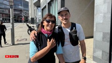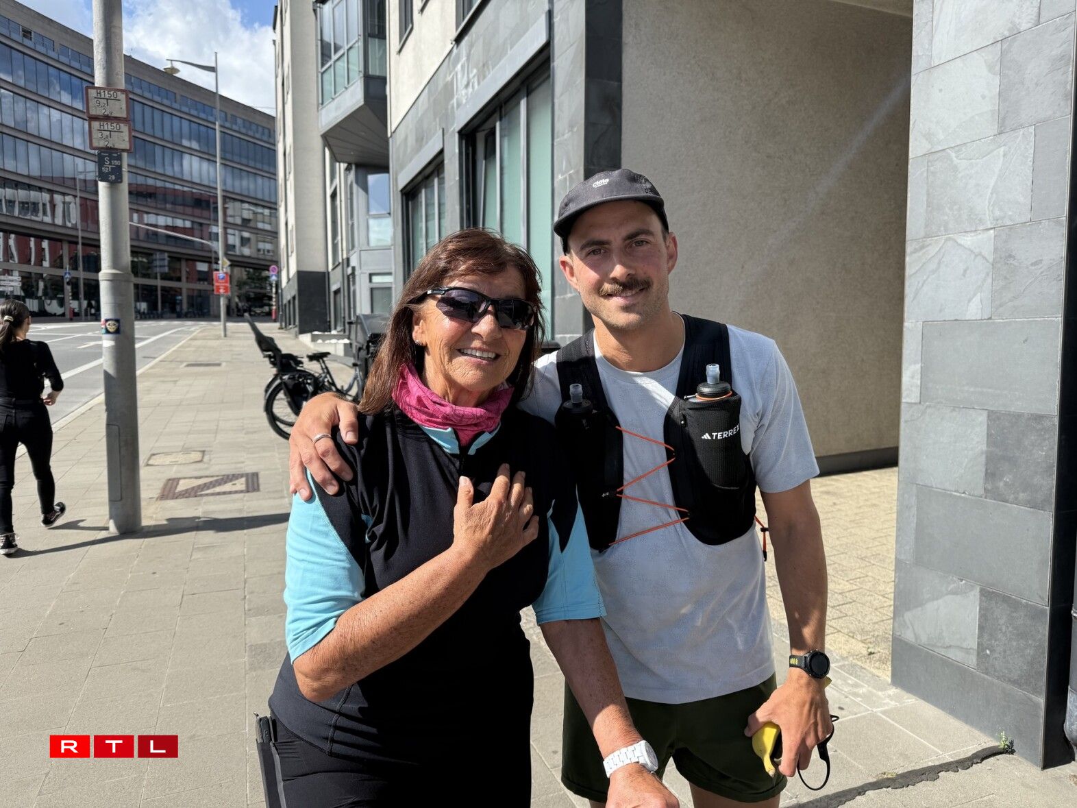 Begleet gëtt hien iwwert déi 10 Deeg vu senger Mamm, si fiert um E-Bike hannendrun. Och Kolleegen hate sech an de leschten Deeg schonn heiansdo ugeschloss a si mam Vëlo matgefuer wärend de Marc huet misse lafen. 3 Stonnen an 30/40 Minutte brauch hien an der Reegel fir déi 42 Kilometer.