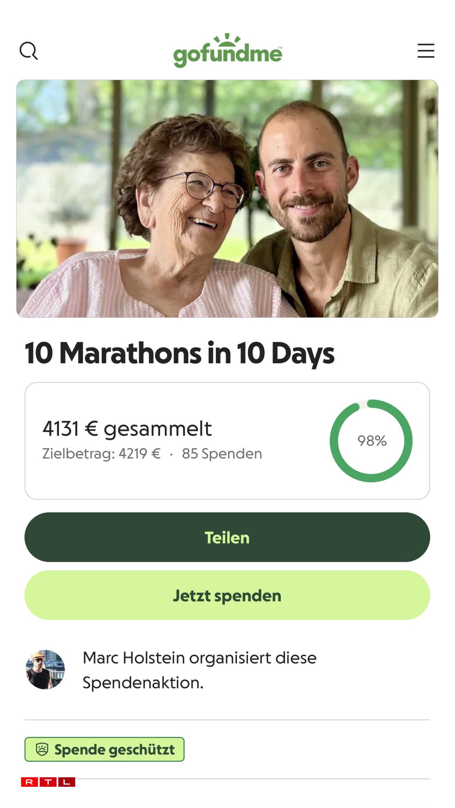 Den 9. Juli waren et genee zwee Joer hier, datt dem Marc seng Boma gestuerwen ass. Als Hommage u si leeft hien aktuell all Dag e Marathon, gläichzäiteg wëll hien awer och Sue fir de gudden Zweck sammelen.