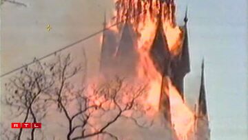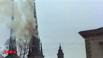 Genee op Karfreideg war de groussen Tuerm vun der Kathedral a Flamen opgaangen an an de Koup gefall. Et waren Maintenanceaarbechten am groussen Tuerm amgaangen, déi d’Feier ausgeléist haten. En däitschen Tourist hat d’Flamen als éischte gesinn a gefilmt.