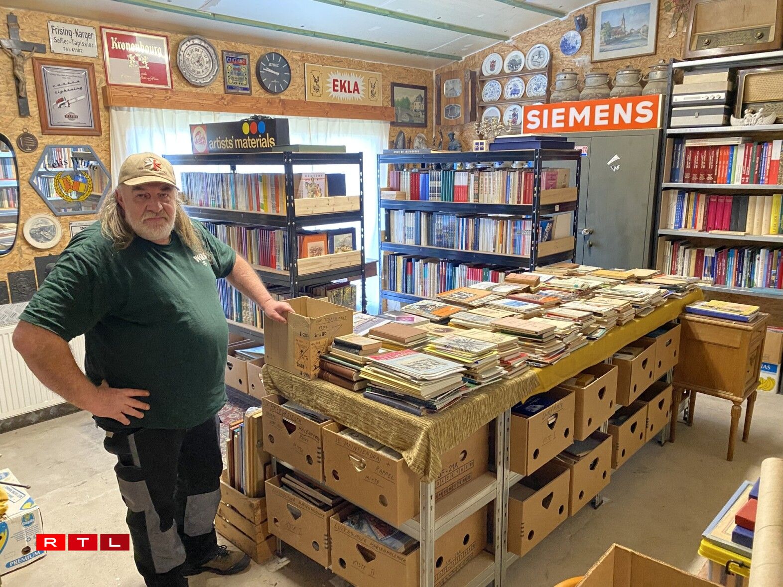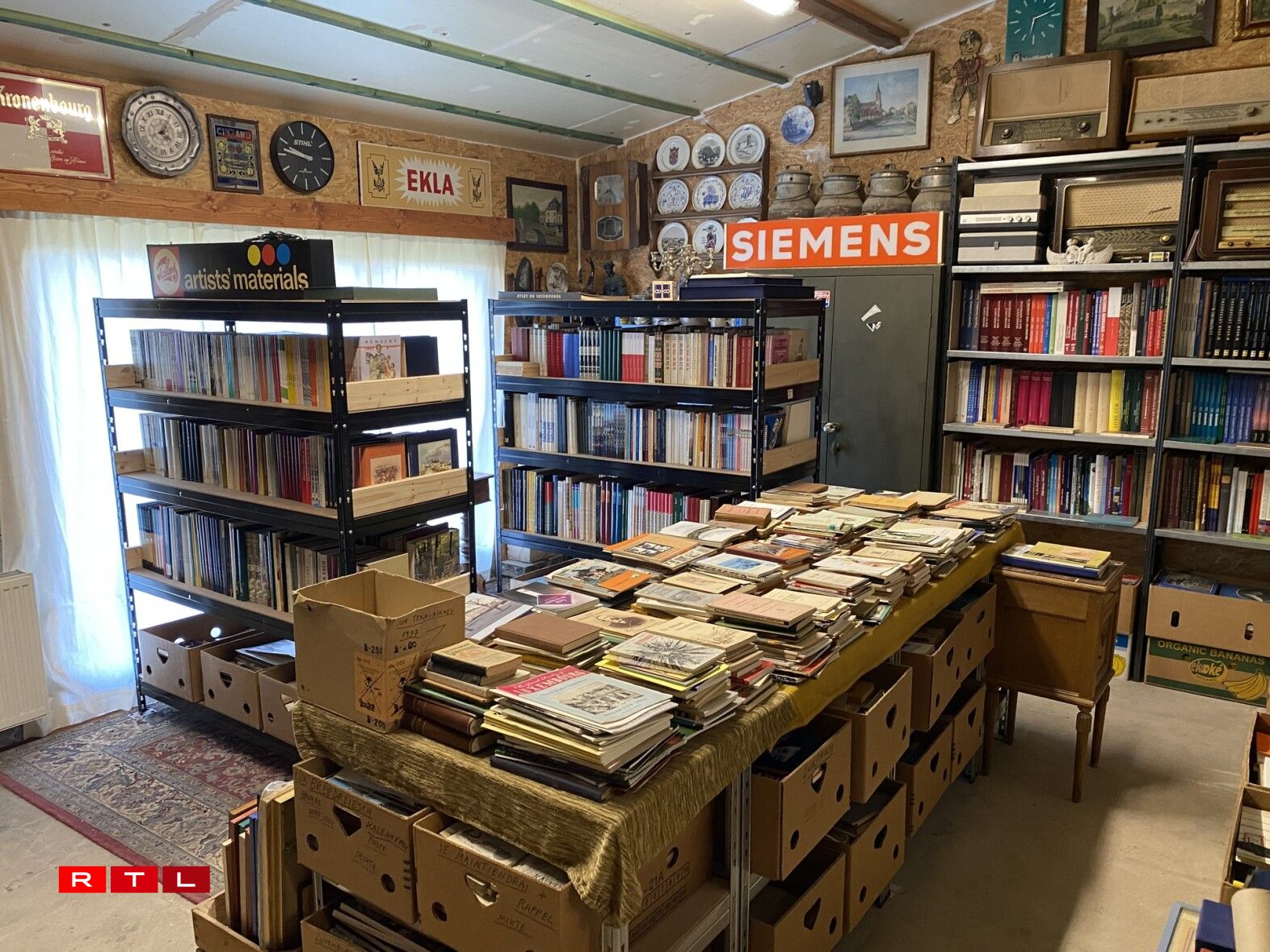 Mat de Jore wier dat alles zesummekomm. Et wier een Haiser raume gaangen an et hätt een och vill vun de Leit kritt. A senger Scheier stapele sech Bicher, Pousteren, Spillsaachen, Krichsmaterial, Postkaarten a villes méi. Souguer déi eeler Radioe funktionéieren nach.