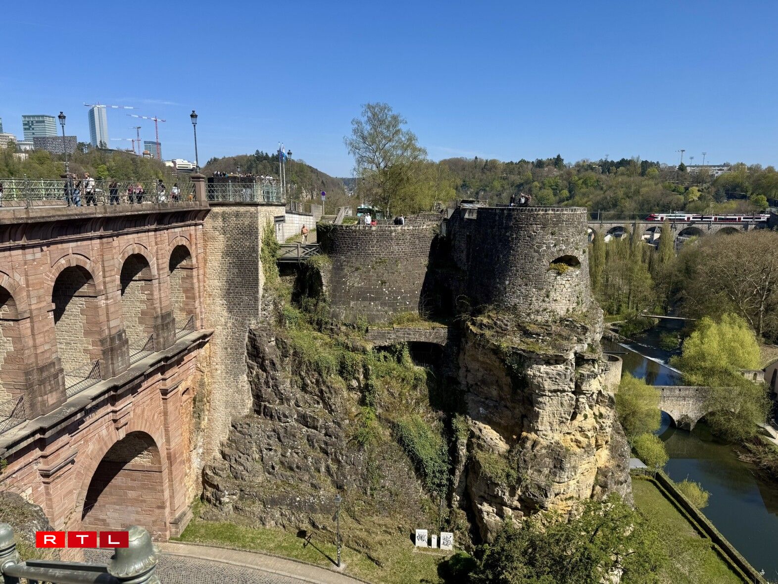 “Wisou wollt de Graf Siegfried hei seng Buerg bauen? Dat huet militär-strateegesch relativ vill Virdeeler. Well hei musse mer just zwou Säite verdeedegen. De Fiels fält nämlech op den zwou Säite 40 Meter an d’Déift. Dat heescht et huet ee just mussen uewen e bëssen d’Stad verdeedegen an dann hei erof Richtung Altmënster, do konnte se Schneisen an de Fiels schloen a Brécken aus Holz bauen. Holzbrécke konnten am Fall vun enger Schluecht verbrannt ginn an dann ass den Accès vill méi schwéier”, sou de Kasematten-Expert Pit Pixius.
