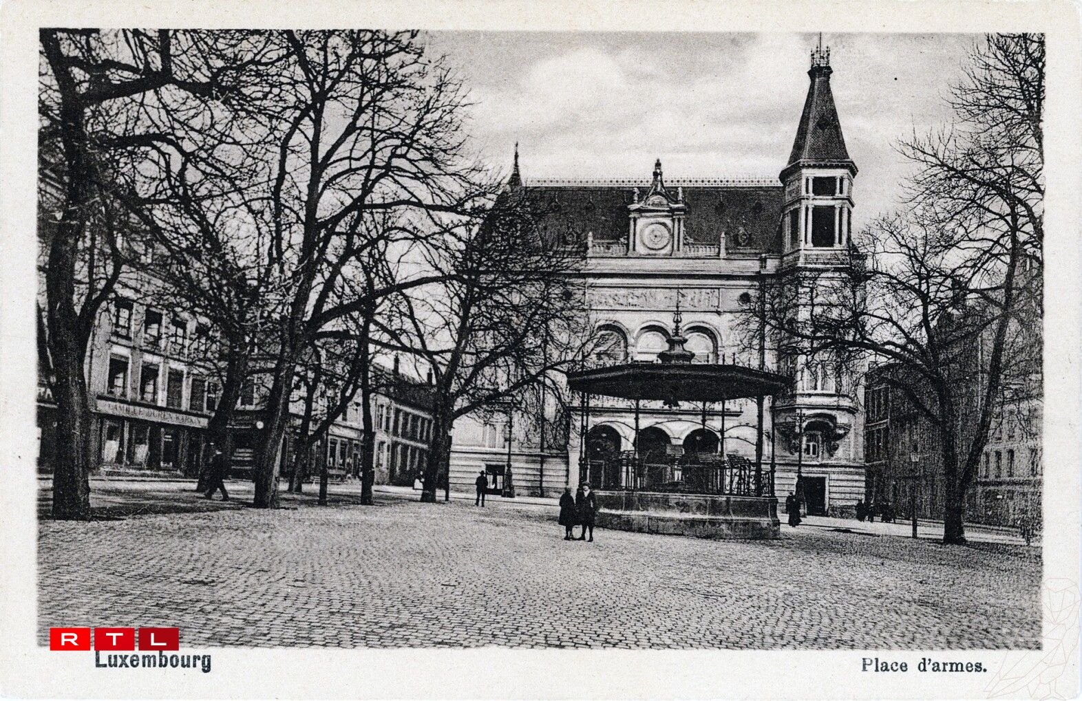 Den éischte Kiosk fir Concerte gouf 1875 um ale Parvis vun der Haaptwuecht opgeriicht ginn, wou d’Garnisounsmusek, d’Stater Fanfaren an d’Betribsorchestere vun der Schampeskellerei Mercier a vu Paul Wurth mat hire Concerten eng Traditioun ugefaangen hunn. 1936 hat den ale Pavillon ausgedéngt an huet misse Plaz fir e méi groussen a prestigiéise Kiosk Plaz maachen.