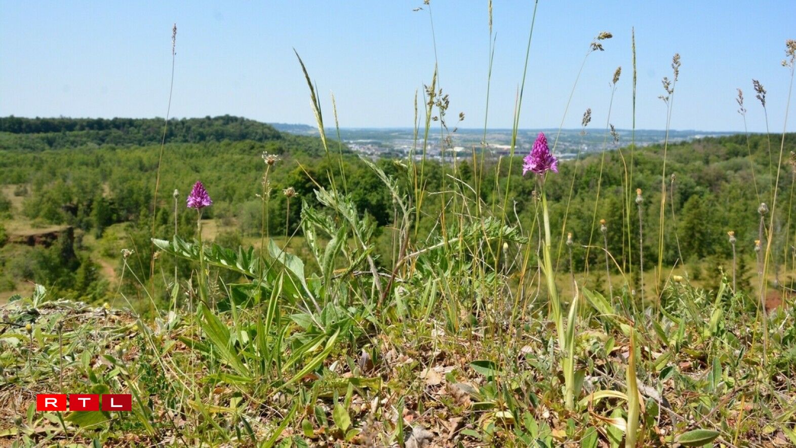 “Dat ass d’Pyramiden-Hondswuerzel (Anacamptis pyramidalis), déi wuel déi opfällegst vun den heemeschen Orchideeën ass. Dës Wisenorchidee huet e laange Still, sou dass déi opfälleg gefierfte Bléie scho vu wäitem gutt ze gesi sinn. Et ass och eng vun deenen Aarten, déi sech an de leschte Joerzéngte wieder ausbreeden, sou wéi och d’Bock-Rimmerzong oder d’Beien-Aperhoerorchidee. Am ganze sinn zu Lëtzebuerg der aktueller Rouder Lëscht no 45 Orchideeën-Aarten heemesch, dovu sinn der allerdéngs 9 zum Deel scho viru laanger Zäit ausgestuerwen. 14 Aarte si bedreet oder staark bedreet. Orchideeë wuessen a verschiddene Liewensraim: am bekanntste si vläicht déi kallekräich Dréchewiss-Standuerter, awer et fënnt ee se och an de Bëscher an a Mooren a fiichte Wisen.”