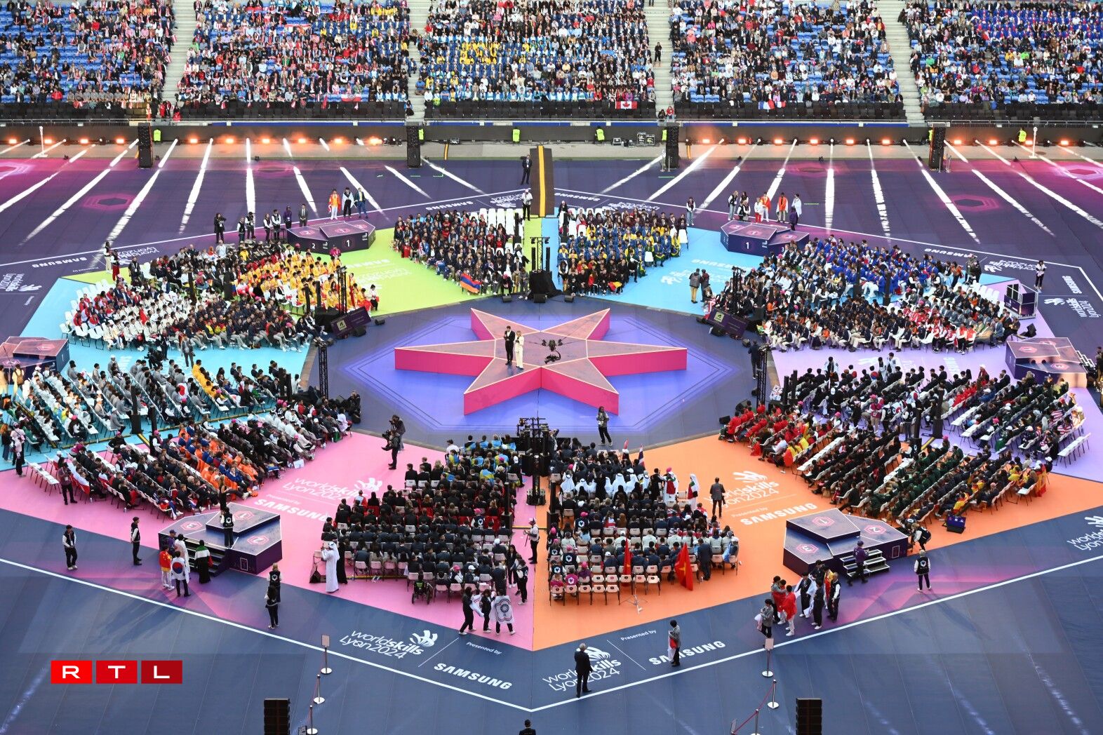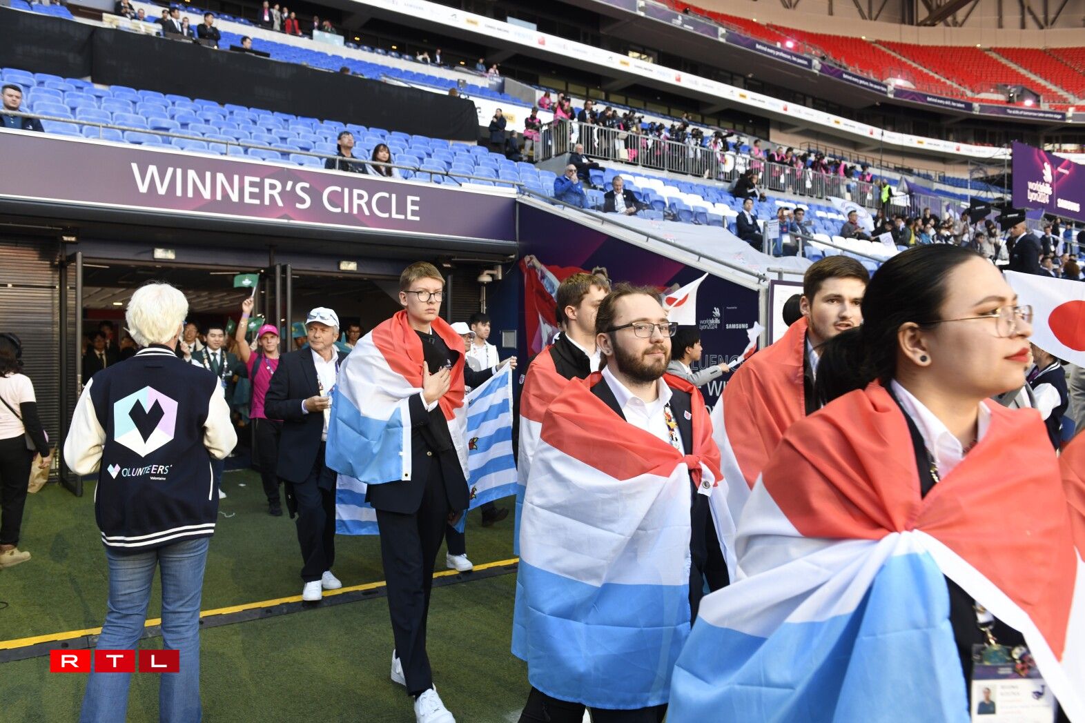 Déi weltgréisste Meeschterschaft vun de Beruffer mat iwwer 1.400 Kandidaten a 60 verschiddene Beruffer konnt dëst Joer méi wéi eng véierel Millioun Visiteuren unzéien a begeeschteren. Och zu Lyon mécht sech den Hierscht esou lues bemierkbar: eng äiseg Loft zitt duerch de Groupama-Stadium am Nordoste vun der drëttgréisster franséischer Stad, an déi Leit, déi hir déck Jackett doheem gelooss hunn, versichen, sech mat Fändelen zouzedecken, fir esouwuel hir Ekipp unzefeieren, wéi och waarm ze bleiwen. Dëst wierkt sech awer net op d’Stëmmung fir dës Closing Ceremony aus.