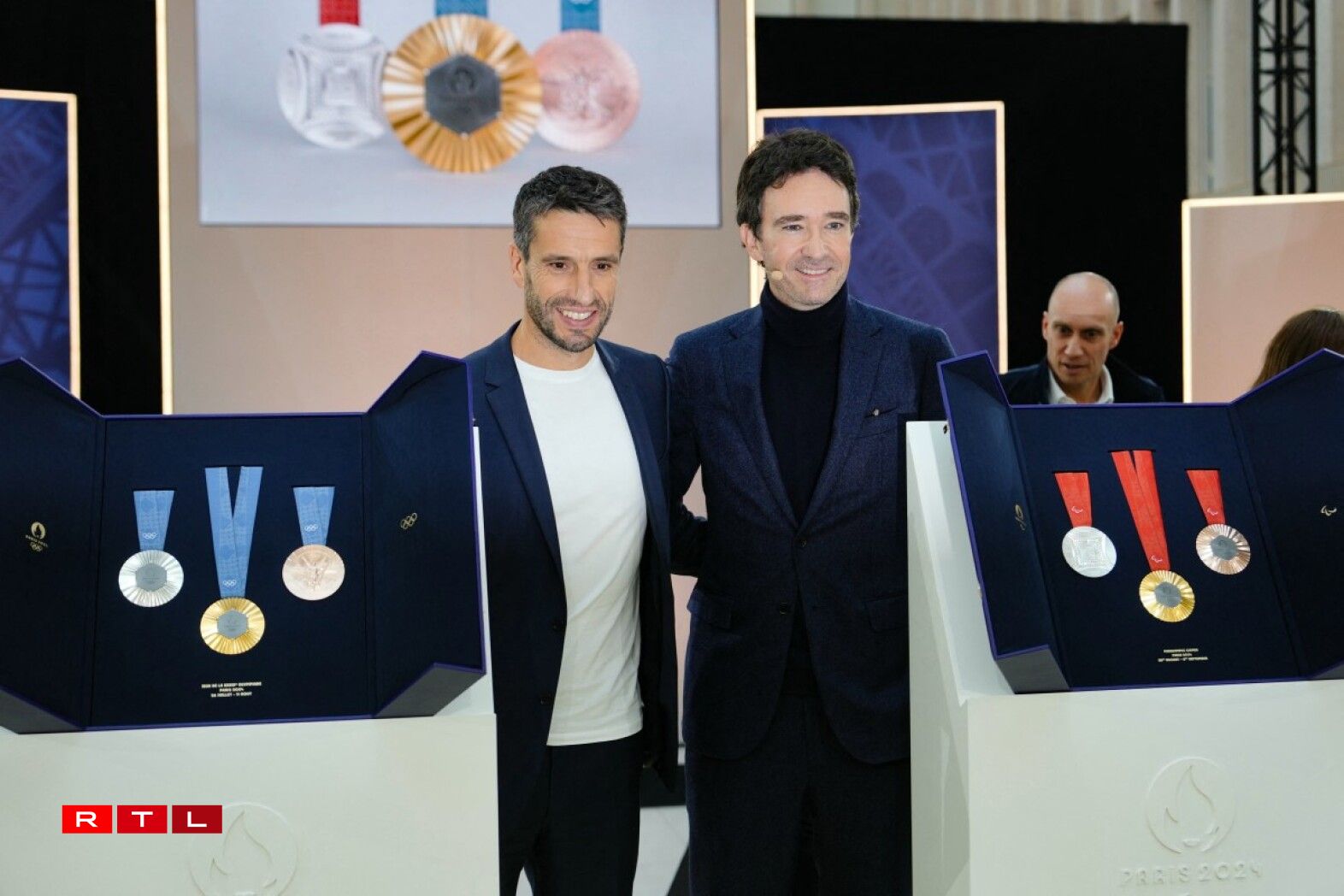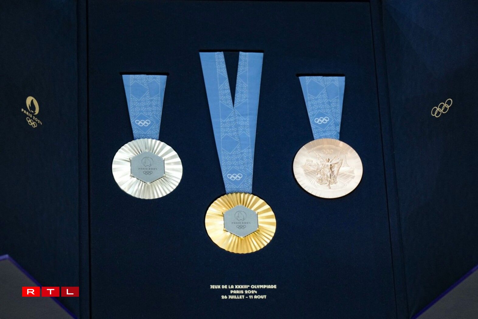 “Mir wollten alle Medailegewënner e Stéck vum Eiffeltuerm vun 1889 schenken”, sot den Tony Estanguet, de Chef vun den Organisateure vun de Spiller zu Paräis. D’Medaile wieren “eng Kombinatioun vun den eedelsten Metaller Gold, Sëlwer a Bronz an dem eedelste Metall vun eisem Land, dem Eiffeltuerm”.