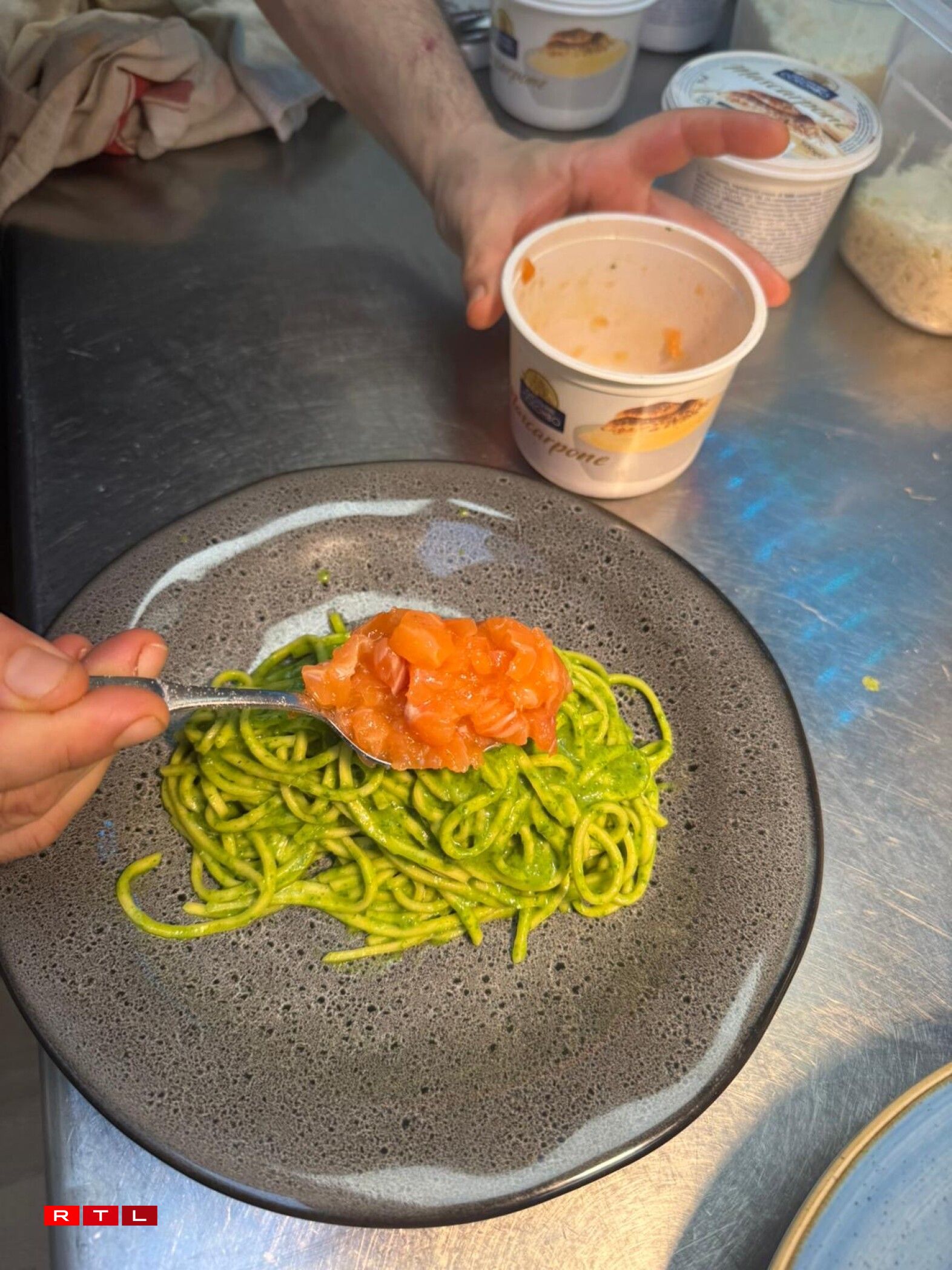 “Nee, dat maache se just a Restauranten, wou d’Nuddele virgekacht ginn. Mir schëdden d’Pasta direkt an d’Zooss, da pecht et och net.” Des Weidere verhënnert d’Fettschicht op der Nuddel, dass dës d’Zooss richteg ophuele kann.