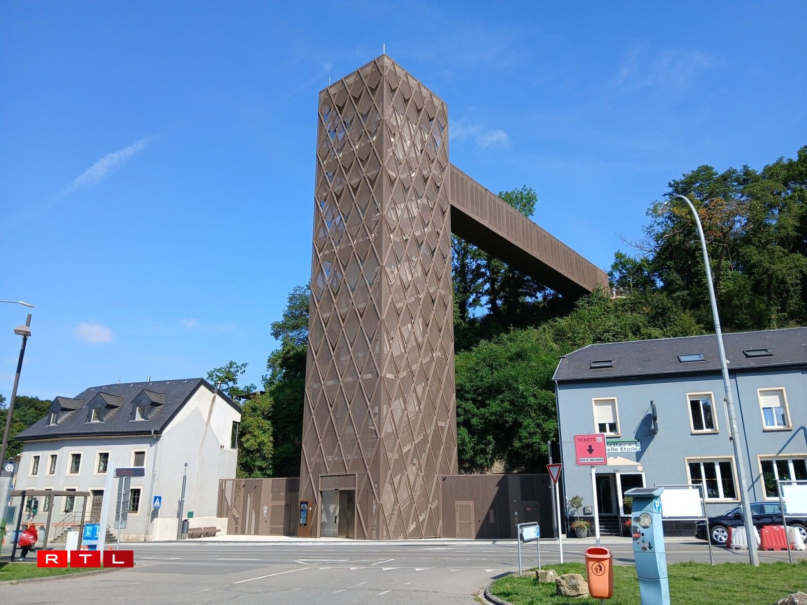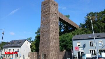 “Den Tuerm u sech ass zimmlech aus engem Goss gebaut ginn. Wat e bëssi méi speziell war, dat war d’Passerell, déi mer do uewen opgeriicht hunn, well d’Passerell ass u sech op eng aner Plaz geliwwert an zesummegeschrauft ginn an dunn hu mer se de 14. September am leschte Joer mat engem spezielle Laaschtekran eropgehuewen an dunn ass se do uewen installéiert ginn.”