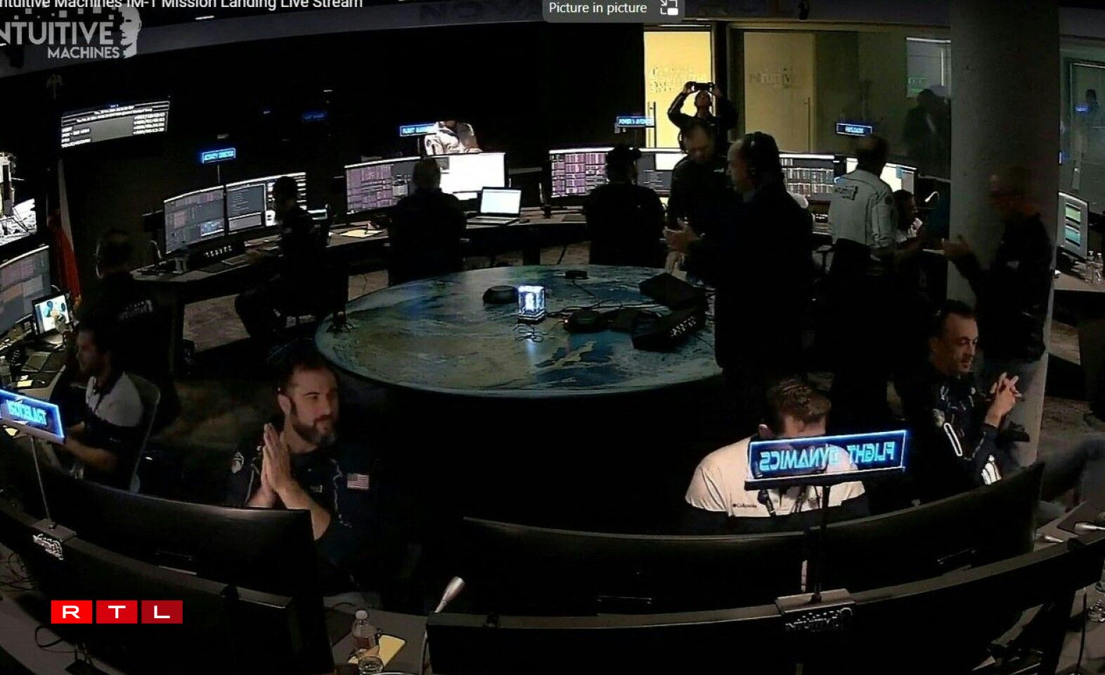 “Houston, den ‘Odysseus’ huet en neit Doheem fonnt.” An der Nuecht op e Freideg koum d’Confirmatioun aus den USA, datt de “Lander” mam Numm “Odysseus”, kuerz och “Ody”, um Mound opgesat huet. “Mir kënnen ouni Zweiwel confirméieren, datt eis Ausrüstung op der Uewerfläch vum Mound ass an datt mir senden”, huet et eng gutt 20 Minutten no der Landung um 00.23 Auer eiser Zäit aus dem Kontrollzenter vun der Firma “Intuitive Machines” geheescht.
