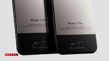 Hei gëtt et allerdéngs net vill Detailer doriwwer oder een Zertifikat, dat beweise kann, datt et tatsächlech e Stéck vum Steve Jobs sengem Pullover ass. Wiem de Risiko egal ass, dee ka sech op eng ganz speziell Editioun vum iPhone 11 Pro fir ronn 6.290 Dollar (mat 64 Go Späicher) freeën. Et gëtt och eng 512 Go Versioun vun dësem Modell fir 7.500 Dollar.