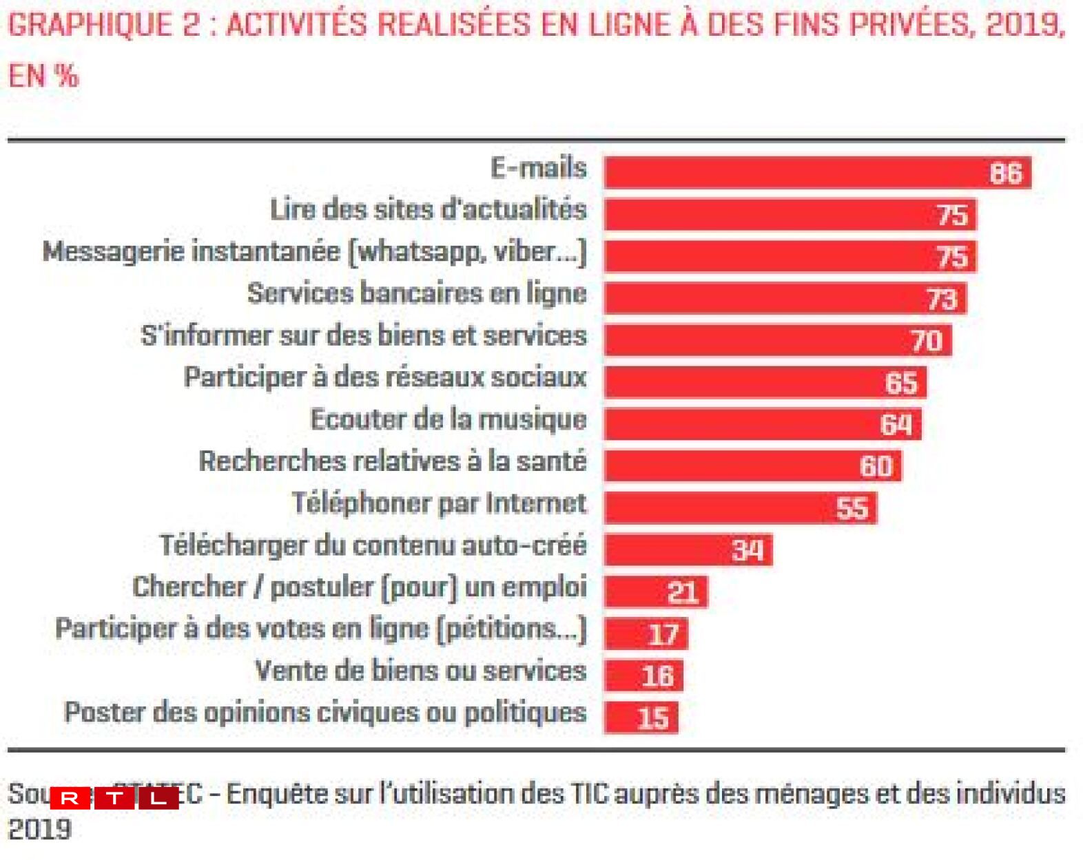 Beim privaten Notze vum Internet geet et der Rei no ëm Noriichten, Webbanking oder nach Informatiounen iwwer Wueren a Servicer.