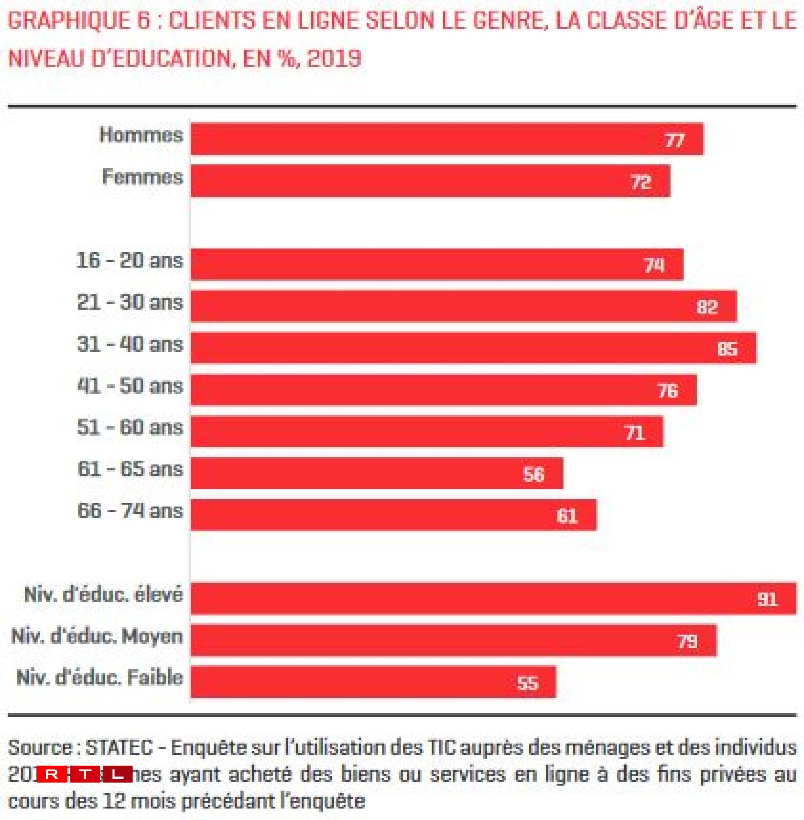 Déi Jonk tëscht 16 a 24 Joer hunn net just quasi all een Internetaccès, mä surfen och zu 99% all Dag am Netz. En änleche Score ass bei de Leit bis 54 Joer déi zu 95% all Dag online sinn. D’Alterskategorie tëscht 55 a 64 ass et zu 76%, d’Seniore zu ëmmerhin nach iwwer 70%. Wéi gesot all Dag.