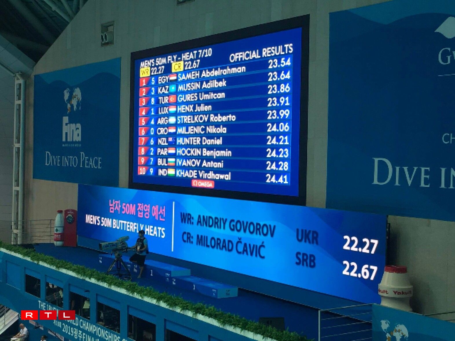 Op der Weltmeeschterschaft am Schwammen zu Gwangju a Südkorea sinn de Julien Henx an d'Monique Olivier zwee nei Landesrekorder geschwommen.