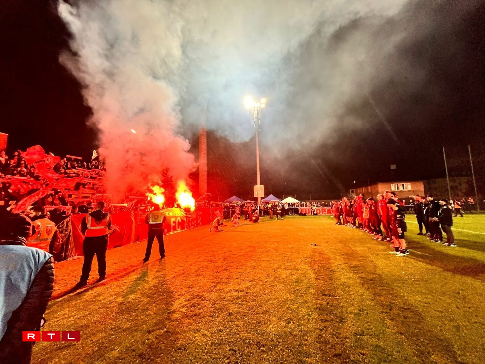 Vun Ufank un huet de Favorit probéiert, de Match an d’Hand ze huelen. No 17 Minutte goufen d’Spiller vum Verluerekascht gewarnt. De Gol vun de Kölner war an der Loft an ass no 20 Minutte gefall. De Benjamin Ley huet déi decisiv Pass op de Fynn Schenten gespillt. Deen huet no engem ganz flotte Mouvement den 1:0 markéiert.