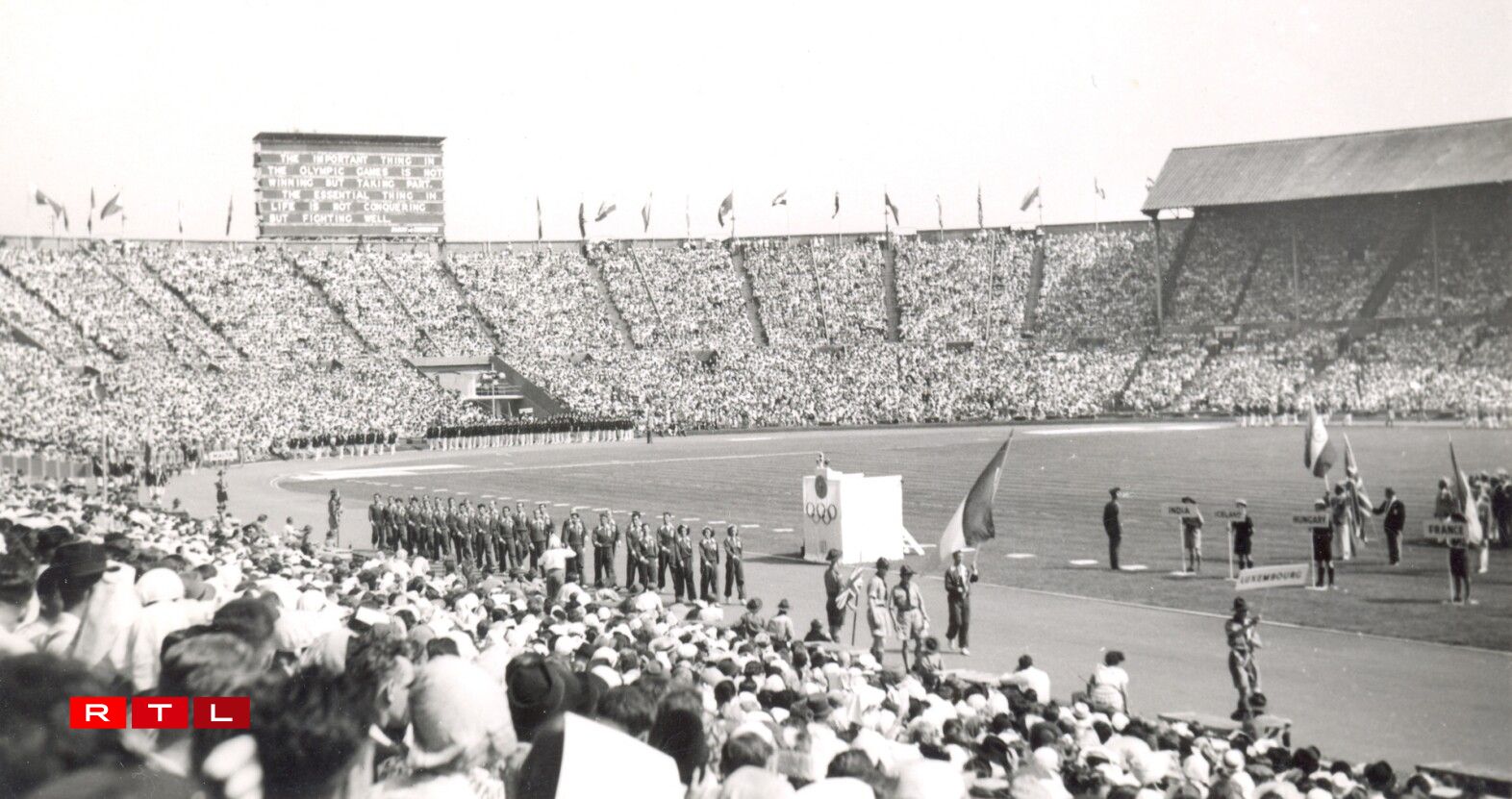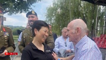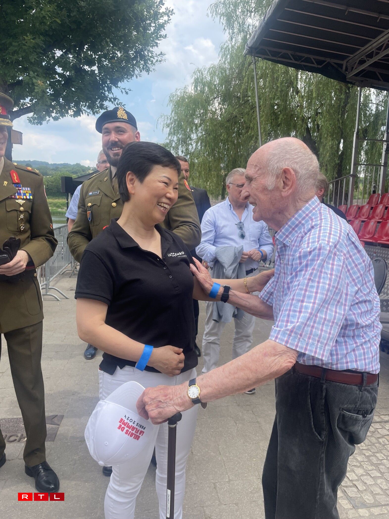 Ënnert den Éieregäscht waren nieft der Groussherzoglecher Koppel an dem Prënz Louis, dem Aussen- a Sportminister och héichrangeg Politiker aus em Ausland – wéi d’Malu Dreyer oder déi franséisch Sportministesch Amelie Oudea Castera an natierlech vill Vertrieder aus dem Sport war, an den Edmond Schmitt. Si all hunn op de Moment gewaart, wéi déi fréier Tennisspillerin Anne Kremer déi d’Olympesch Flam no 76 Joer fir zweet op Lëtzebuerg bruecht huet.