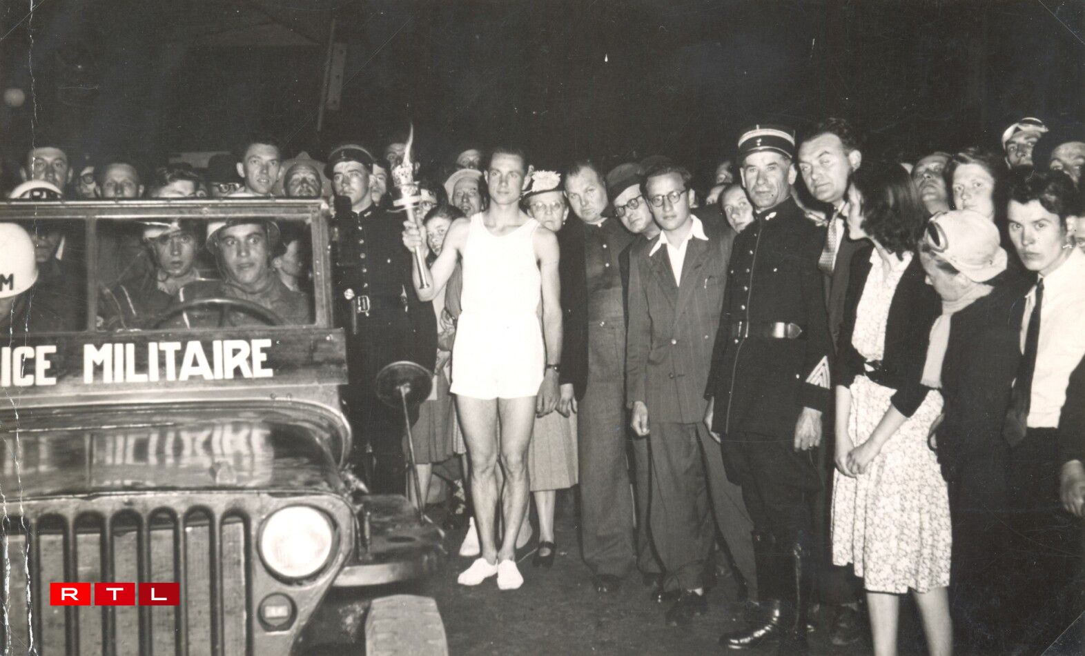 Déi alleréischt Kéier war am Kader vun den Olympesche Spiller zu London 1948. Deemools war et den talentéierte Liichtathlet, spéidere Journalist an Auteur Edmond Schmitt. Hie gouf mat grad emol 20 Joer ee vun den 38 Leefer, déi mam Friddenssymbol eng 100 Kilometer duerch d’Land gelaf sinn. Vu Leideleng an d’Stad huet hien d’Fakel deemools gedroen, 3 Kilometer matten an der däischterer Nuecht, kuerz nom zweete Weltkrich.