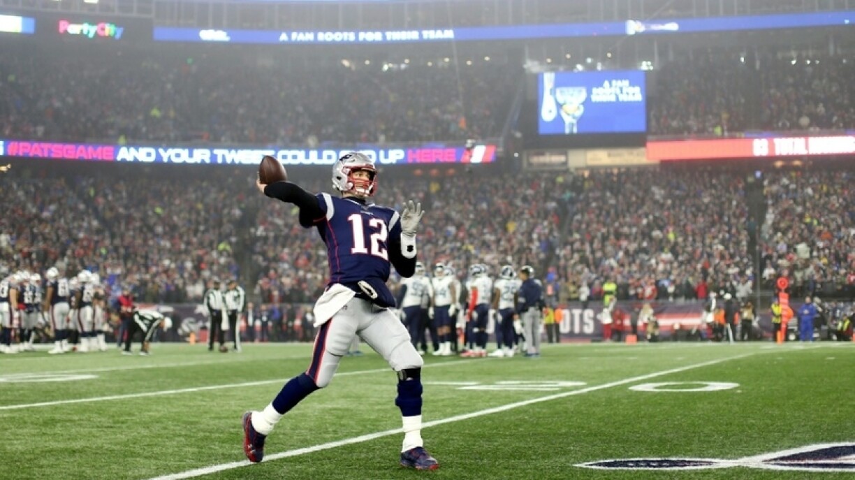 Patriots-Offensiv versot 1 Yard virun der EndzonD‘Defense vun de Patriots war iwwer déi komplett Saison dominant an och an der éischter Hallschent hu si gréisstendeels eng gutt Figur gemaach, och wa si den Derrick Henry net richteg an de Grëff kruten. Ma nawell konnte si d‘Offense vun den Titans nees stoppen an esou gouf et eng weider Chance fir Brady a Co., fir ze punkten. Si haten et och bis op d‘1-Yard-Linn gepackt, ma do hu si versot. Si hunn et mat 3 Laf-Spillzich hannertenee probéiert, ma si sinn net an d‘Endzon komm an esou goufen et amplaz vu 7 Punkte fir en Touchdown nëmmen 3 Punkten duerch ee weidert Field Goal vum Nick Folk.