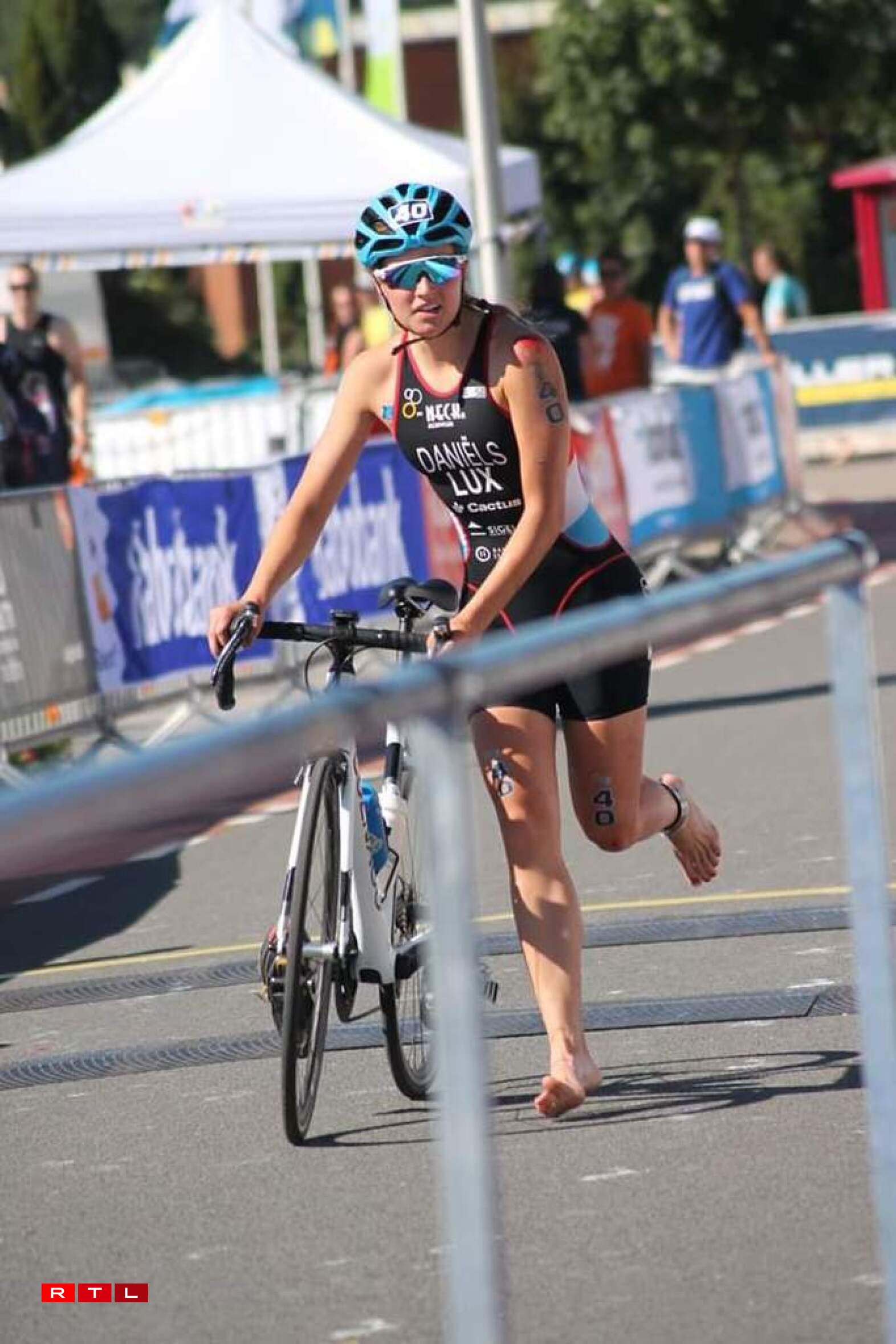 Dobäi hat fir déi jonk Lëtzebuergerin de Start vun der Kompetitioun villverspriechend ausgesinn. Si ass mat de Favoritten no dem Schwammen aus dem Waasser geklommen a konnt duerno um Vëlo och den Uschloss halen, ma eng Chute an ee Blockéieren vun der Vëlosketten hunn der Eva Daniëls awer ee Stréch duerch d’Rechnung gemaach.