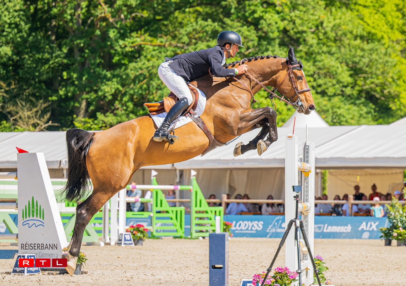 E Samschdeg an der Qualifikatioun fir de Grand Prix CSI-5 Stären hat de Sprangreider mat sengem Päerd Foxy de la Roque mat der éischter Plaz scho gewisen, datt mat hinnen ze rechnen ass. Am Stieche vum Grand Prix huet de Lëtzebuerger sech an enger Zäit vu 34,07 Sekonne kloer kënnen duerchsetzen. Am Interview mam Franky Hippert kënnt hien nach eemol op seng Victoire zréck, denkt awer och schonn un d`Zukunft mam Foxy de la Roque.
